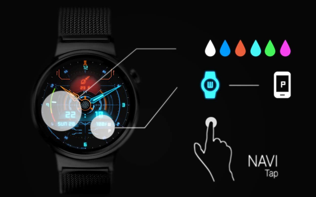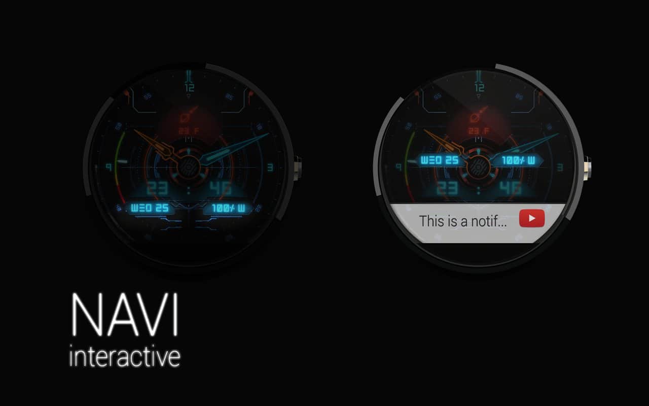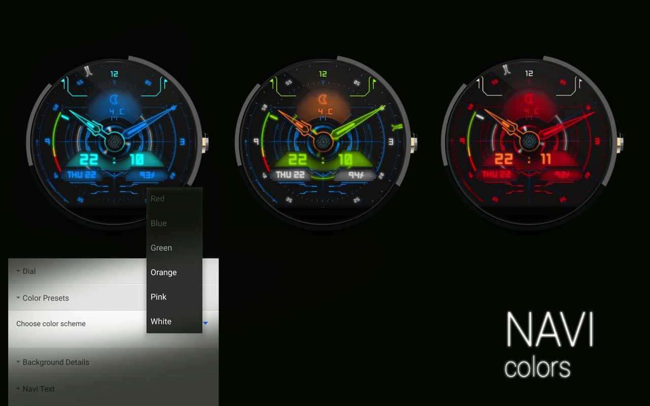 Прекрасный, наполненный мелкими деталями и яркими цветами циферблат способен украсить любые часы. NAVI это аналоговый вотчфейс с парой стрелок и небольшим индикатором секунд, он дает возможность выбрать одно из нескольких предложенных цветовых сочетаний, а на экран будет вынесена информация о погоде, уровне заряда батареи, дате и, конечно же, текущем времени. Кроме того, в приложении масса гибких настроек.