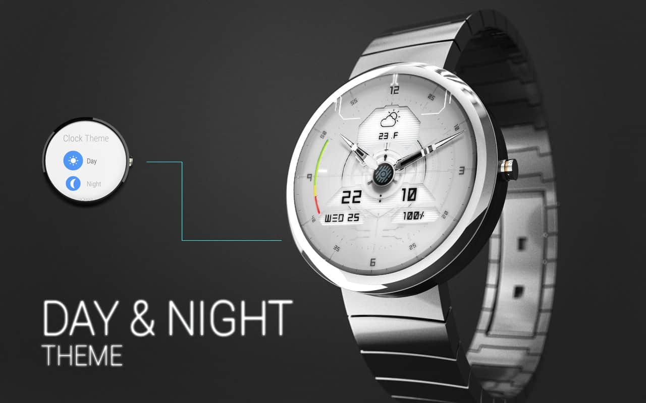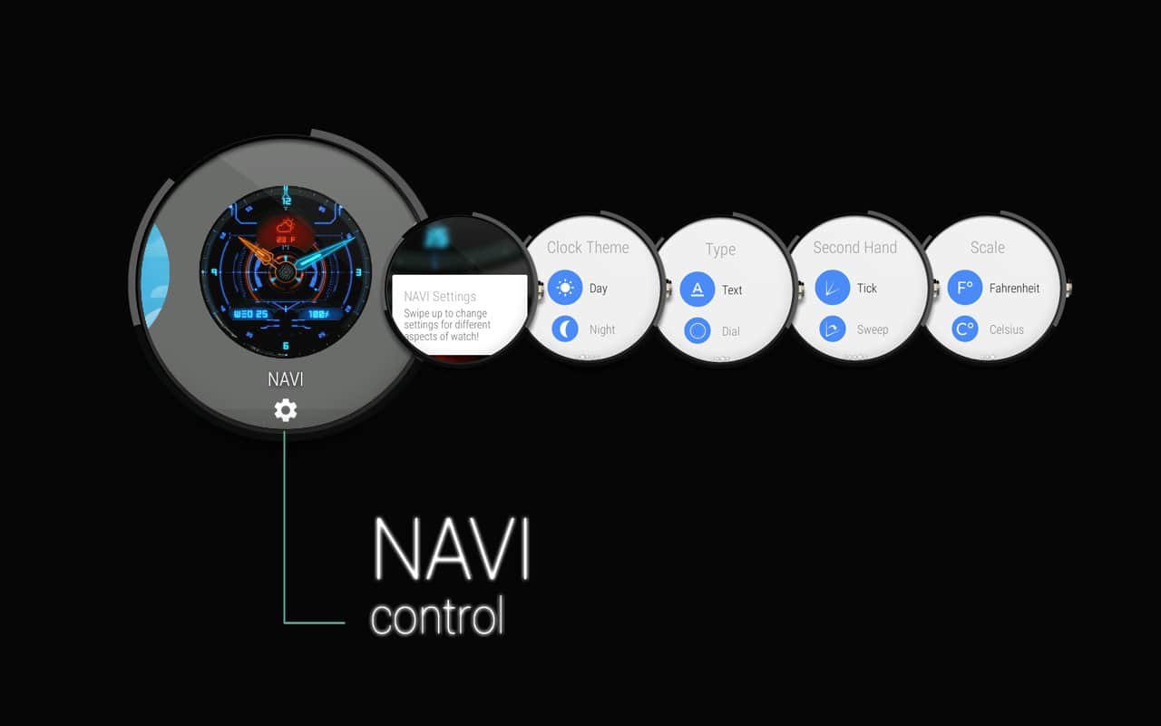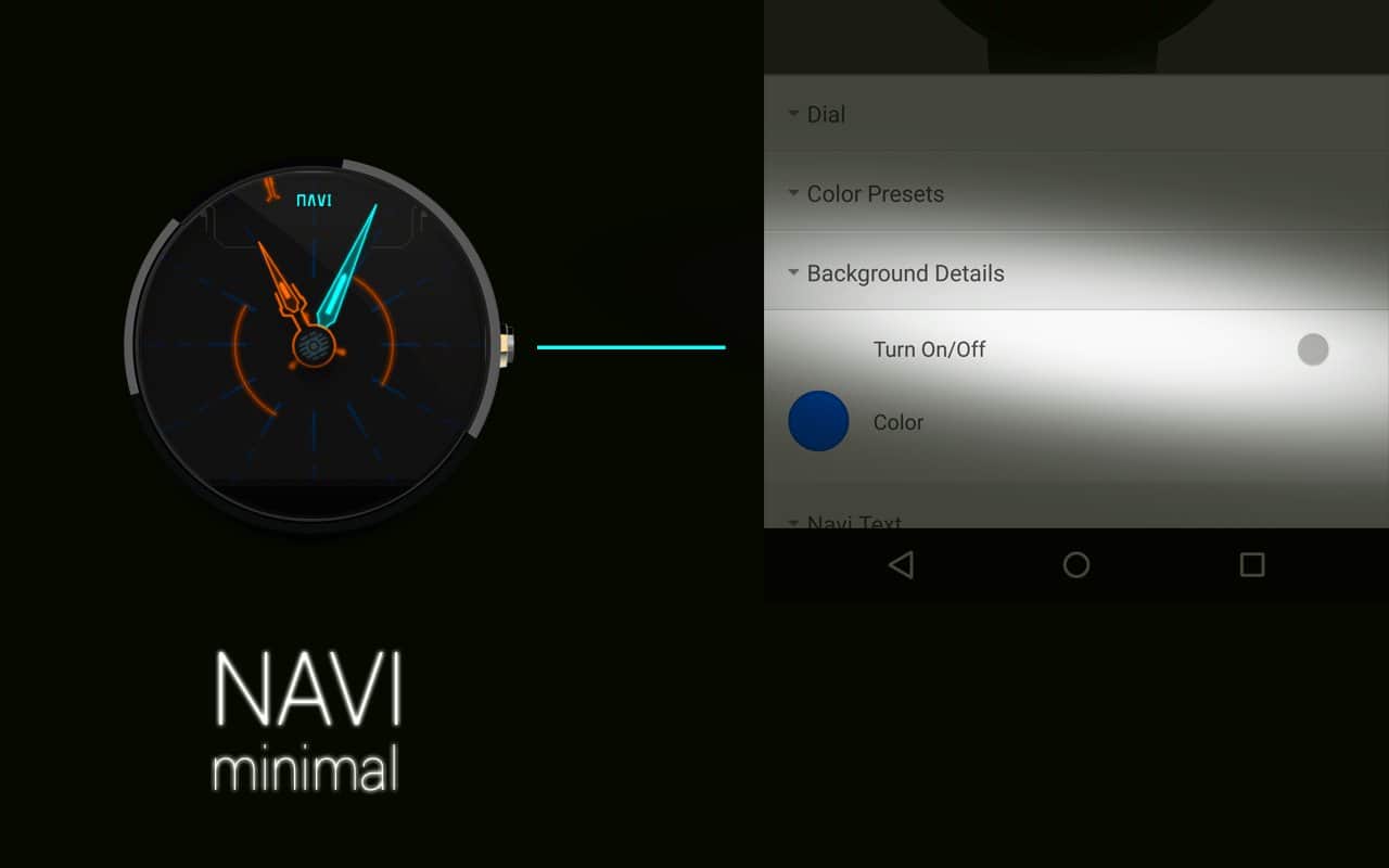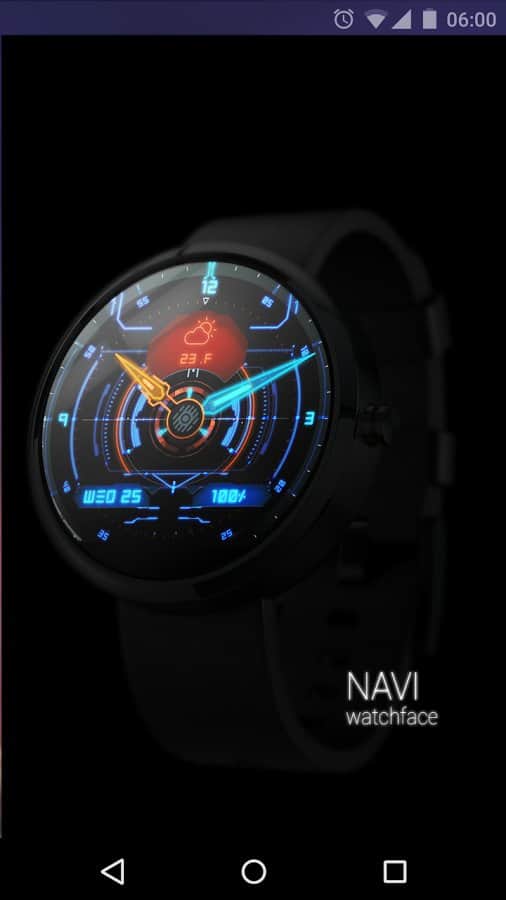 Прекрасный, наполненный мелкими деталями и яркими цветами циферблат способен украсить любые часы. NAVI это аналоговый вотчфейс с парой стрелок и небольшим индикатором секунд, он дает возможность выбрать одно из нескольких предложенных цветовых сочетаний, а на экран будет вынесена информация о погоде, уровне заряда батареи, дате и, конечно же, текущем времени. Кроме того, в приложении масса гибких настроек.