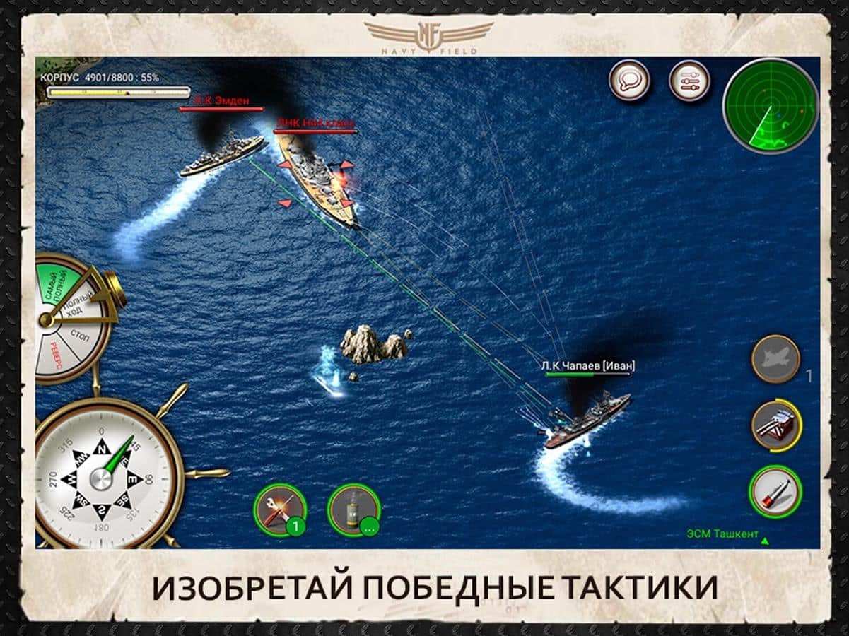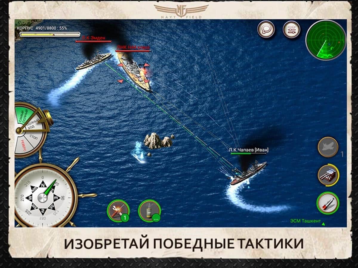 Navy Field – станьте во главе огромного флота и сражайтесь с другими капитанами в жестоких морских боях. Эта игра перенесет вас во времена Второй Мировой Войны, где участвуют пять мировых держав СССР, США, Англия, Германия и Япония выбирайте одну из воющих сторон и начинайте бой. В этой игре вы будете в реальном времени командовать многочисленными кораблями и экипажем и вести бой с другими игроками на огромных картах. Соберите свой флот, который будет состоять из малых и больших кораблей, подводных лодок и авианосцев. В игре представлено более 100 исторических кораблей с детальной прорисовкой каждой мелочи. Обновляйте свой флот и команду по ходу игры и увеличивайте свою мощь и силу.