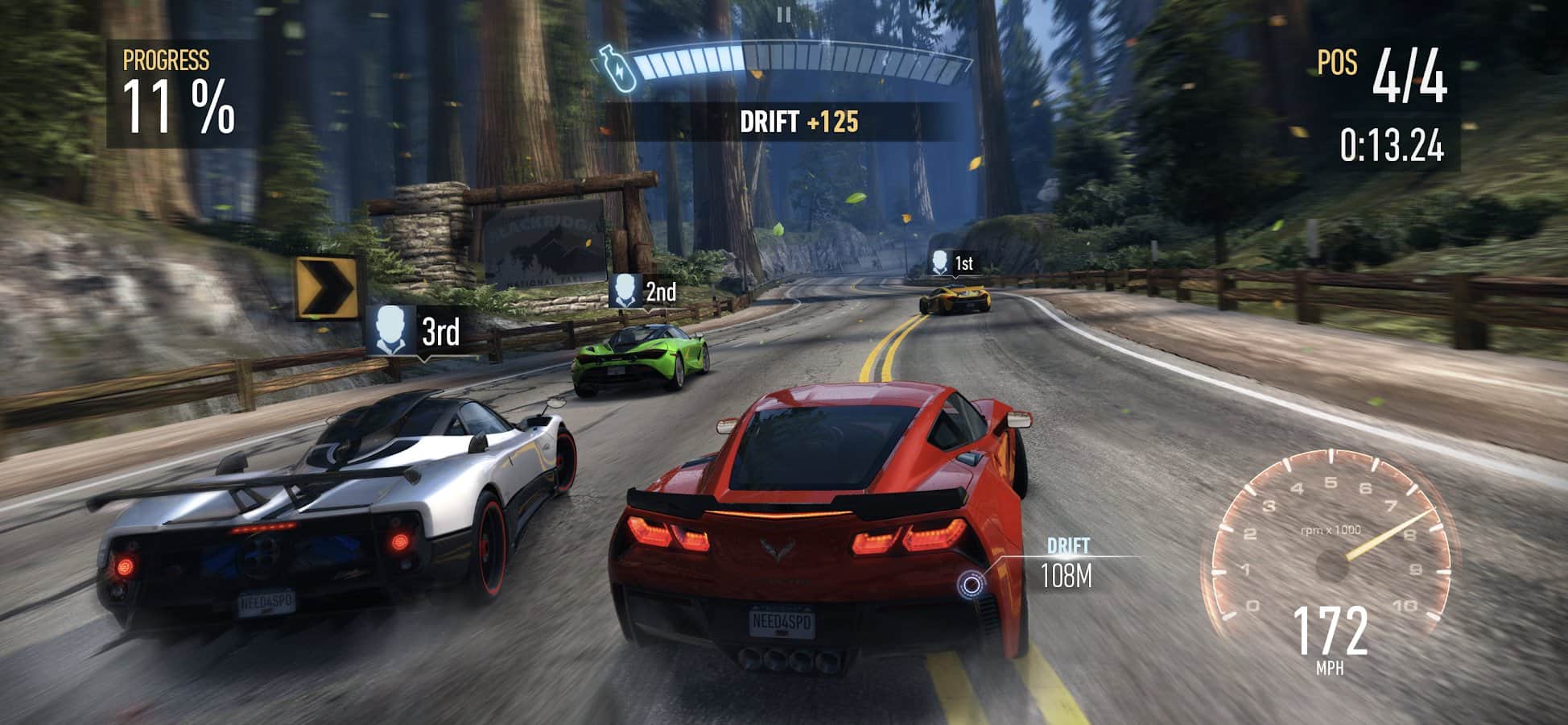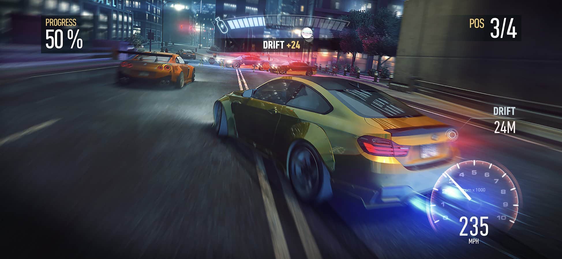Но не спешите радоваться: вы еще не забыли, что играете в условно-бесплатную игру? Как только вы зайдете в пункт с прокачкой характеристик вашего авто, вас встретит дроп вещей и ужасная система карточек. К слову, автомобили вы будете получать за определенное их количество. Управление упростили донельзя — теперь ваш автомобиль движется буквально «по рельсам». Игра окончательно превратилась в самый обычный раннер. С графической точки зрения проект смотрится симпатично, но оптимизация желает лучшего: трассы имеют шикарную текстуру, а автомобили напротив — как из картона. И это на топовом устройстве? С музыкальной составляющей у NFS No Limits тоже беда. И дело тут даже не в выбранных треках. Они тут, к слову, весьма неплохие, но даже их, увы, до конца не сможете прослушать. Из-за коротких заездов вы не сможете оценить и половину трека. А так как разработчики не продумали этот момент, вам придется почти каждую вторую гонку слушать один и тот же отрывок одной и той же композиции.