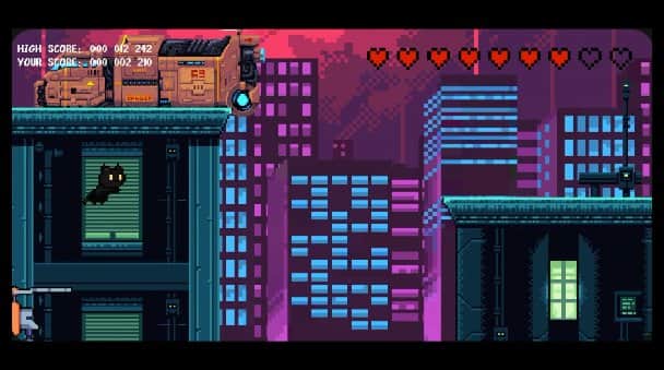 Это простая и хорошая ранер игра про котика которая прыгает по крышам ну и так же по дронам