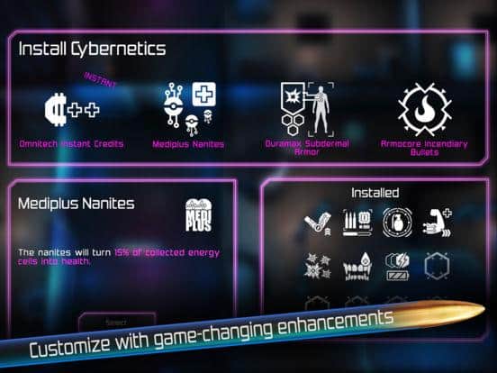 Neon Chrome – изометрический шутер для IOS, где вы будете уничтожать главного врага людей – Смотрителя. В этой игре вы перенесетесь в недалекое будущее, выполненное в киберпанковом стиле. Возьмите под свой контроль главного героя и сражайтесь с многочисленными врагами, которые имеют сильные и слабые стороны. Собирайте монетки и прокачивайте своего героя, приобретая улучшения и оружие. Игра порадует игроков генерируемыми уровнями, отличной графикой и разрушаемым миром. Доберитесь до Смотрителя и уничтожьте его.