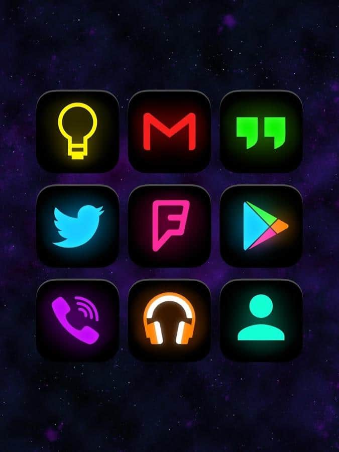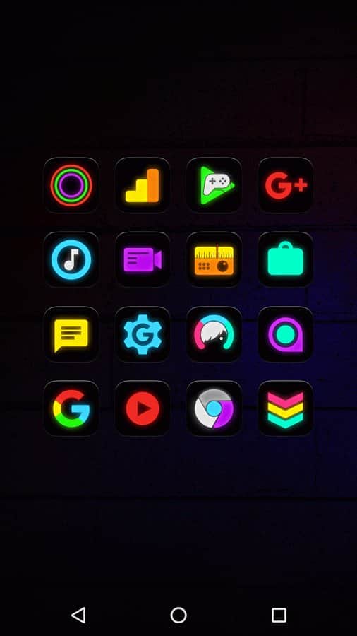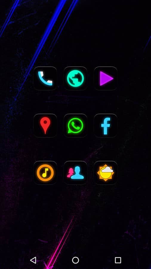 Neon Glow - Icon Pack - специально для любителей неоновой подсветки было разработано данное приложение содержащее в себе более чем 4000 различных иконок которые красиво подсвечены и очень ярко выделяются. Установите черный рабочий стол и данные иконки будут словно неоновые вывески на ночной улице, все они сделаны очень качественно и на самом деле кажутся неоновыми.