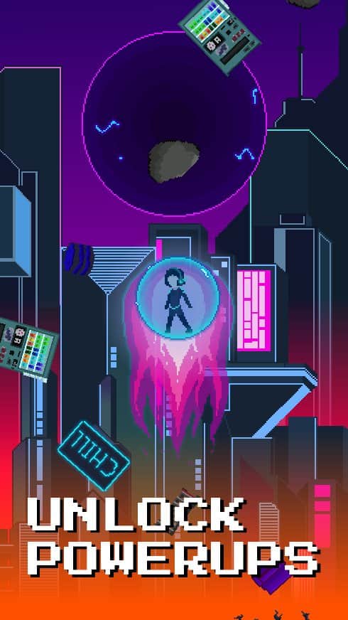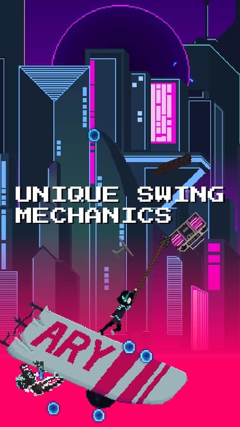 Neon Hook – взбирайтесь как можно выше цепляясь за различные предметы висящие в воздухе и избегайте черной дыры. В этой игре вы окажитесь в городе, который вот-вот поглотит черная дыра и вашей задачей будет подняться как можно выше в небо. Помогите девочке по имени Рика выполнить свою миссию и не дать черной дыре забрать ее. Цепляйтесь с помощью веревок за различные объекты и поднимайтесь все выше. По пути не забывайте собирать фрагменты материи, которая откроет для вас доступ к новым персонажам. Получайте бонусы и усиления и проходите уровни как можно быстрее.