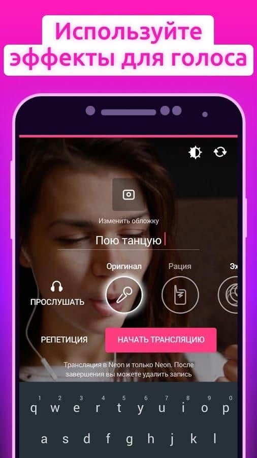 Neon - караоке в прямом эфире - Думаете у вас есть талант к пению? А готовы доказать это в прямом эфире? Теперь у любого желающего появилась возможность петь караоке онлайн! А так же можно смотреть как поют другие, и даже ставить им оценки. Это забавное приложение объединяет в себе певцов по всему миру. Все что нужно это войти в свой аккаунт с помощью ВК или же Фейсбука, и вот перед вами список всех тех кто в данный момент поет, а так же есть кнопка с помощью которой вы сможете выбрать песню для себя и начать петь онлайн!