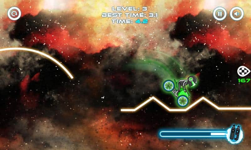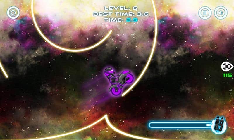 Neon Motocross - игра на аndroid, в которой вам предстоит ездить на неоновом мотоцикле по неоновым трассам. Делайте сумасшедшие трюки, такие как повороты и невероятные сальто. Выбирайте один из 6 мотоциклов и гоняйте на бешеной скорости и зарабатывайте высшие баллы за непревзойдённую езду.