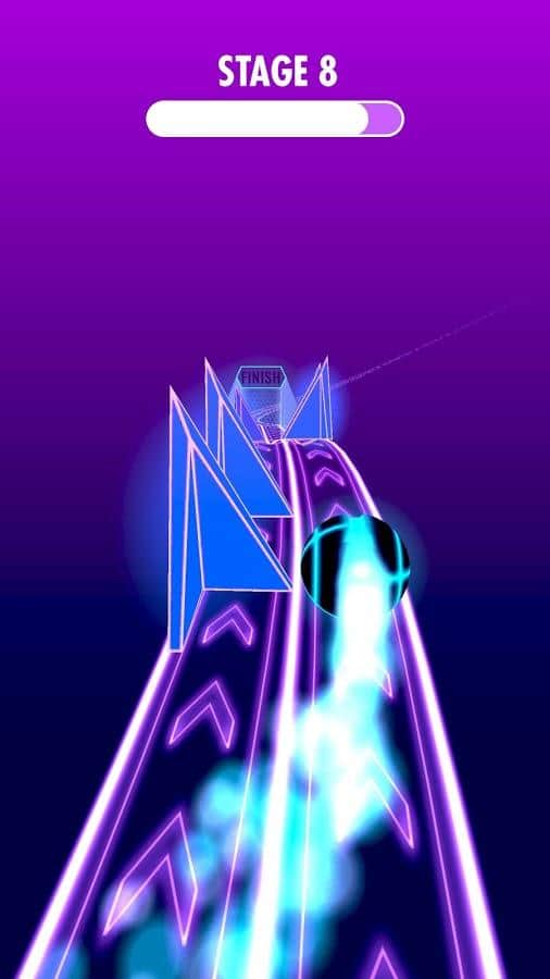 Neon Speed Rush – возьмите под свой контроль шар и проведите его по извилистым трассам игры. В этой неоновой игре вашей задачей будет двигаться вперед с бешеной скоростью и обходить ловушки и собирать бонусы. Проверьте свои рефлексы и касайтесь экрана в нужный момент чтобы шарик перемещался по двум параллельным полосам обходя преграды. Будьте предельно внимательны и не допускайте столкновений шара с преградами в виде острых шипов. Пройдите как можно большее расстояние в игре и установите свой рекорд. Применяйте усиления и быстрее проходите испытания.