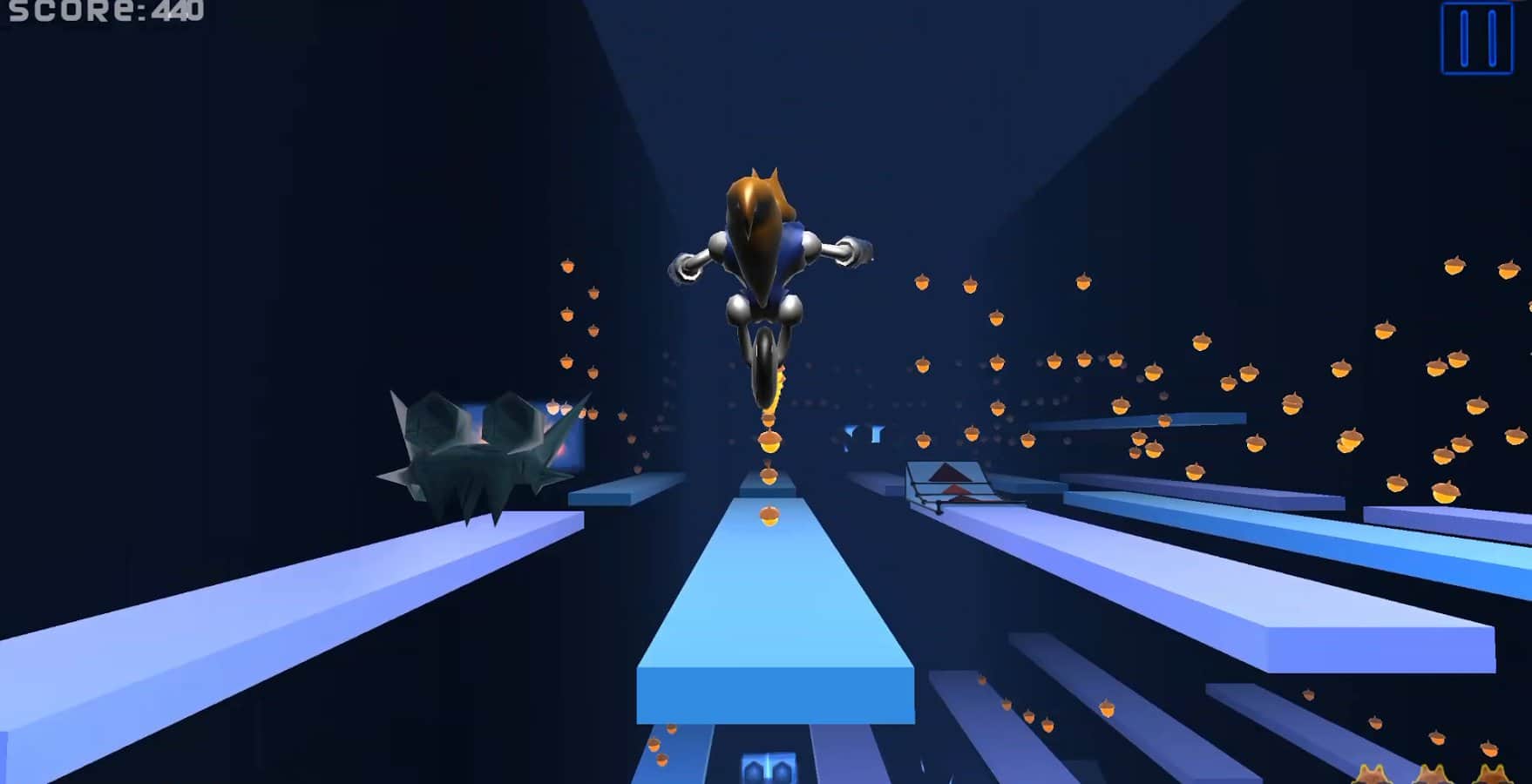 Neon Squirrel 3D – раннер на андроид, где вы будете управлять белкой супергероем. В этой игре вас ждут новые приключения белки супергероя. Наша белка отправилась в опасное путешествие по различным мирам для того чтобы собрать как можно больше орехов от которых зависит популяция его вида. Передвигайтесь по движущимся и скользким платформам пытаясь удержаться на них, при этом собирайте орехи и уничтожайте электрических врагов. Управление в игре очень простое с помощью акселерометра или специальных кнопок на экране вашего девайса. Соберите как можно больше орех и продержитесь, максимальное количество времени в игре.