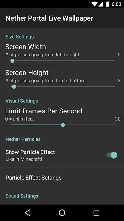 Nether Portal Live Wallpaper – живые обои на андроид, созданные в стиле Minecraft. Благодаря этим обоям на вашем экране телефона или планшета появятся абстрактный мир, который будет завораживать вас своими эффектами. Меняйте настойки и устанавливайте их по своему усмотрению для того чтобы получить завихрения, большое количество падающих частиц и многое другое. Сделайте свои обои уникальными, подобрав для них подходящий цвет, а также смешивая и сочетая различные эффекты. Установите эти живые обои прямо сейчас и наслаждайтесь приятной пиксельной графикой и широким выбором настроек.