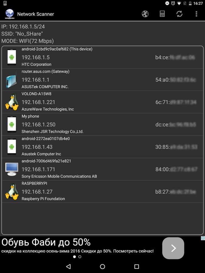 Network Scanner - Сканируйте свое интернет соединение и узнайте всю информацию о нем. Приложение очень простое, но работает отлично, и сможет показать всю нужную вам информацию. Имеет простой и приятный интерфейс.