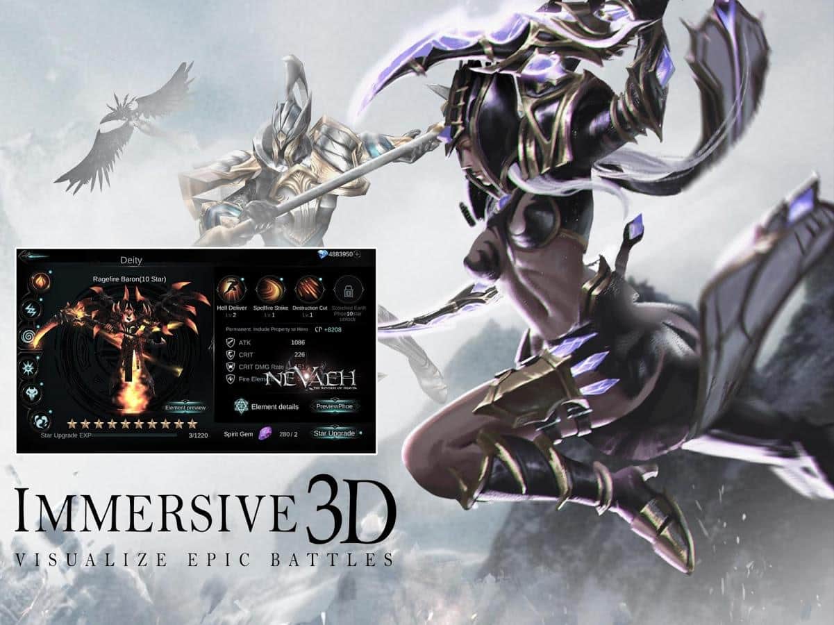 Nevaeh – возьмите под свой контроль отважного воина и сразитесь с силами тьмы в этой игре на андроид. Демонические существа плетут заговор, чтобы захватить и поработить весь мир и только вы способны их остановить. Выбирайте себе героя из предложенных в игре такого, который подойдёт вам по всем параметрам и показателям. Каждый герой в этой игре обладает своими уникальными навыками и характеристиками, которые пригодятся вам в битве с врагами. Для победы над сильными боссами и монстрами объединяйте свои усилия с друзьями и создавайте непобедимые альянсы. Бросайте вызов реальным игрокам со всего мира и сражайтесь на арене.