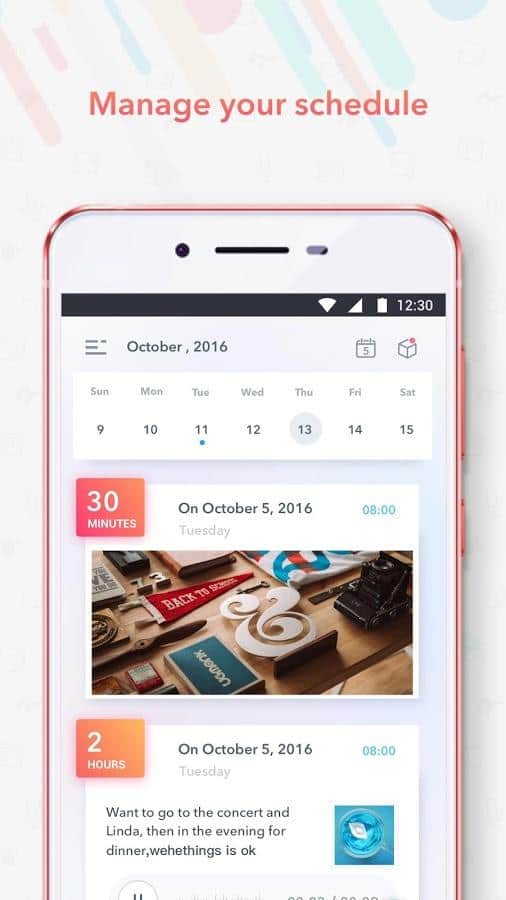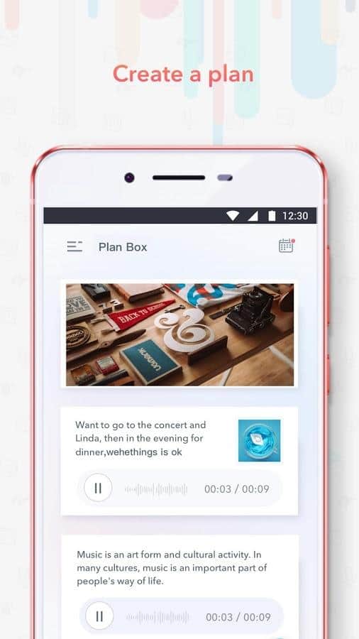 Next - plan & remind - Великолепное приложение для создания планов, и напоминания. Оно сможет создать для вас удобный план, в котором будет расписано все что вам нужно. Вбить вы можете текст, аудиозапись, или изображение. Так же, вы сможете делиться своими планами с другими людьми.