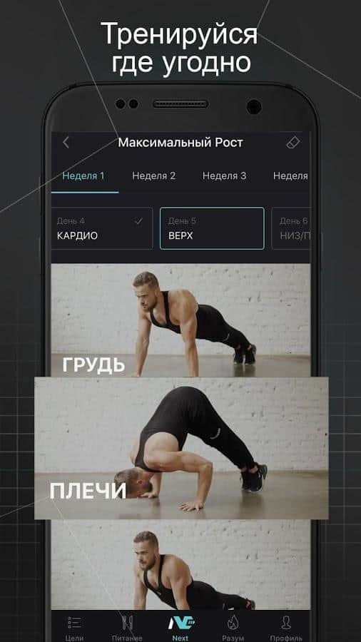 Специально для тех, кто любит спорт и хочет иметь идеальную фигуру, быть в тонусе и в хорошем настроении, разработана программа Next. Различные виды упражнений, пакеты тренировок под различные виды мышц и многое другое.
