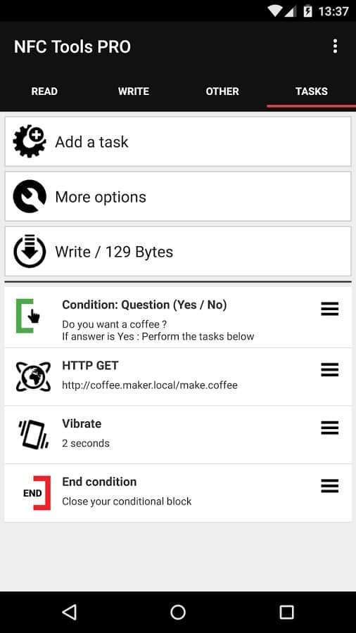 NFC Tools – отличное приложение, скачав и установив которое вы получаете возможность считывать и создавать NFC-теги и прочие RFID-теги, совместимые с вашим телефоном. Все что вам необходимо, это приблизить устройство к тегу и NFC Tools предоставит имеющуюся информацию, а именно: