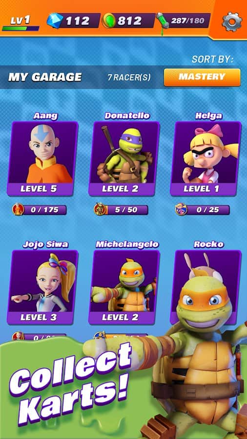 Nickelodeon Kart Racers - Проедьте все трассы, специализированные на гонках, вместе с различными персонажами Nickelodeon! Перемещайтесь на локации, принадлежащие мирам из мультфильмов, где сможете встретить: Губку Боба Квадратные Штаны, Патрика Стара, Сэнди Чикс, Аангу; Роко, ДжоДжо Сива; Леонардо, Рафаэля, Донателло, Микеланджело, Шреддера; Томми, Анжелику, Рептара, Арнольда Шотмэна и многих других героев. Разблокируйте новые трассы и скоростные автомобили, научитесь дрифтовать на аренах, соревнуйтесь с другими игроками и зарабатывайте очки, чтобы продвигаться по карьерной лестнице вверх.