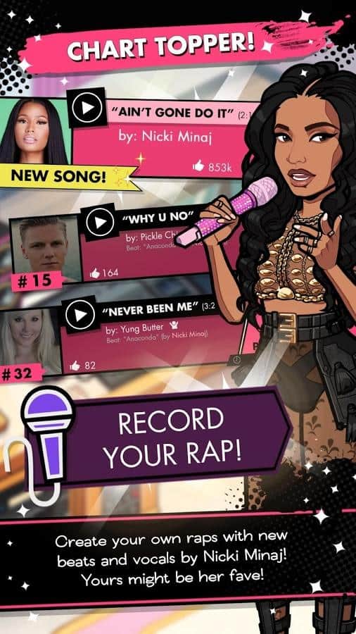 Превратись из обычного любителя хип-хопа в настоящую звезду с помощью Ники Минаж в игре Nicki Minaj: The empire. Наставник обязательно качественно исполнит свои песни и покажет пример того, как себя должна вести звезда. Остается только записать собственные хиты и устраивать громкие вечеринки, способствующие росту по карьерной лестнице в шоу-бизнесе. Создай собственного главного персонажа с его особым стилем, покоряющего сцену собственными композициями. Выступи в известном ночном клубе, устрой свою вечеринку, стань популярным и известным!