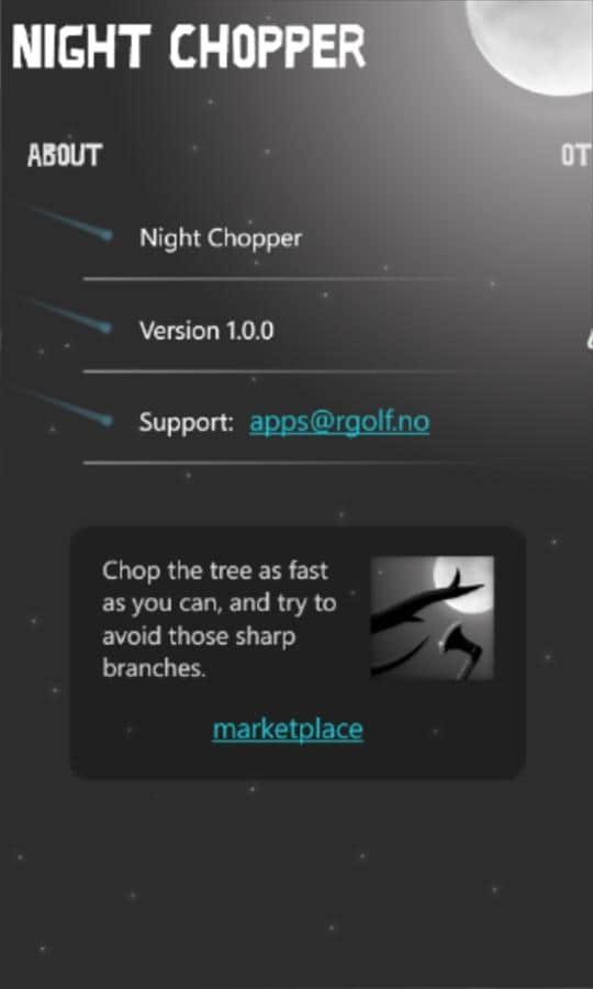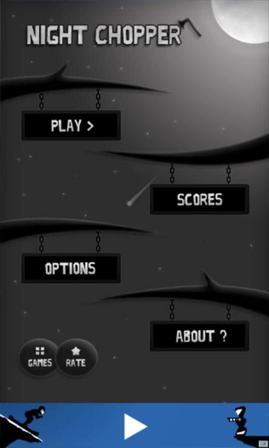 Night Chopper - интересная и заманчивая игра, сделанная в темных тонах, где вам предстоит рубить ветки деревьев. Рубите ветки топором с четырех позиций и избегайте острых веток, которые могут вам навредить. Отличная игра, в которой действия происходят под лунным светом и красивые звуки фортепиано исполняющего различные сонаты.