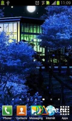 Night Sakura Live Wallpaper – прекрасен сад не только днем, но и ночью, тем более, если это сад цветущей сакуры. Живые обои для андроид с ночным садом сакуры, цветущим возле дома. Ощущение тепла и уюта, легкость мягкой ночи – все для вас.