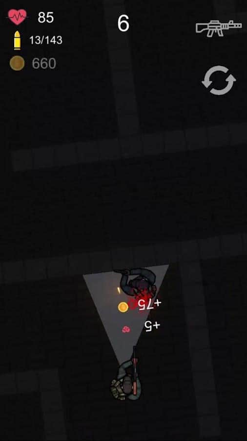 Управление. Нажатие на правую часть экрана и персонаж поворачивается вправо и наоборот. Двигается же и стреляет персонаж автоматически (насчёт стрельбы не уверен, но когда я встретил хоть какого-то противника я уже извергал все что ел за сегодня). И это все сделанно довольно косо и криво.