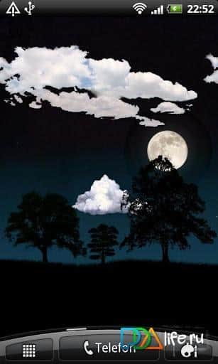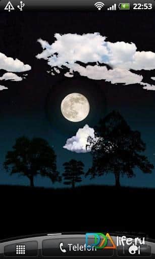 Nightsky Live Wallpaper – живые обои для андроид от разработчика Y.E.S Limited, отражающие глубину и загадочность ночного неба в период полнолуния. Плывущие по небу облака, темные силуэты деревьев на горизонте – все это возможно на экране вашего смартфона/планшета. Скачать Nightsky Live Wallpaper можно перейдя по ссылке приведенной ниже.