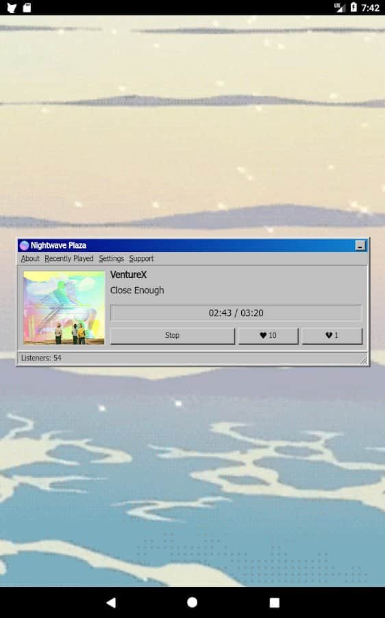 Nightwave Plaza -Загляните назад в прошлое и насладитесь той атмосферой, которой так не хватало вам ранее! Прослушивайте ежедневно самые лучшие треки, при этом не слушая никакую рекламу. Вы можете сами решать, как именно музыка будет играть в приложении: по очереди, рандомно или будут только те треки, какие вы добавили в избранное. Используя минималистичный, но очень атмосферный дизайн приложения, у вас есть возможность полностью окунуться в собственные мысли и не обращать внимание на какие-то отвлекающие детали.