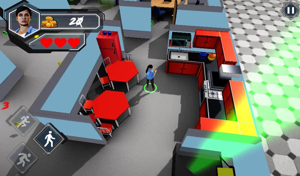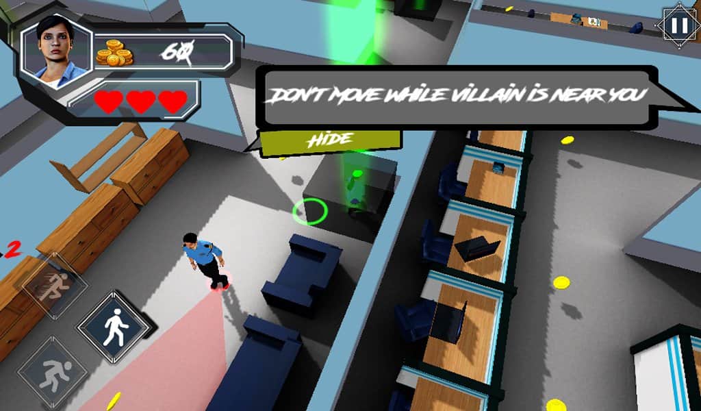 Nilanjana the game – захватывающая игра на андроид, где вы будете помогать молодой девушке убежать от сумасшедшего охранника. Наша героиня допоздна засиделась на работе и осталась одна в офисе наедине с неадекватным охранником, который настроен не очень дружелюбно. Перемещайтесь по многоэтажному зданию офиса и избегайте встречи с охранником. Вашей главной задачей будет на каждом уровне игры отыскать нужные вам ключи, чтобы перейти на следующий уровень и покинуть здание. Используйте укрытия и различные предметы, чтобы уйти от преследования. Пройдите все уровни этой нелегкой игры и покиньте здание. Наслаждайтесь захватывающим игровым процессом и простым управлением.
