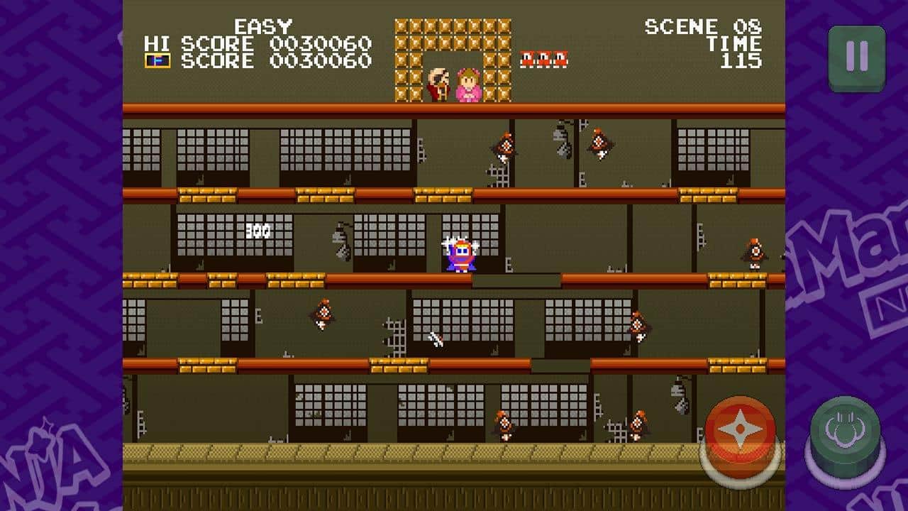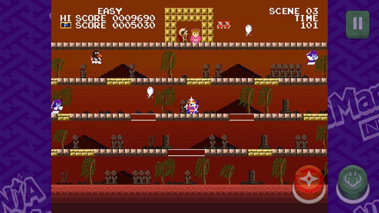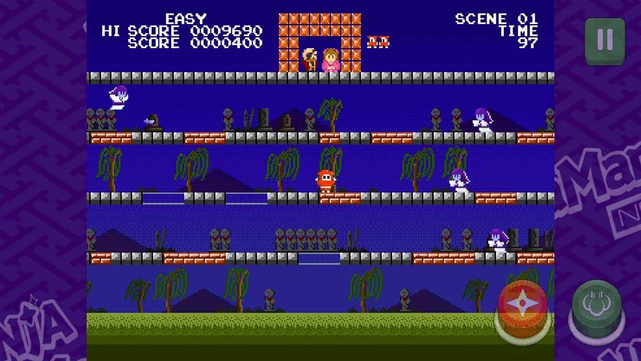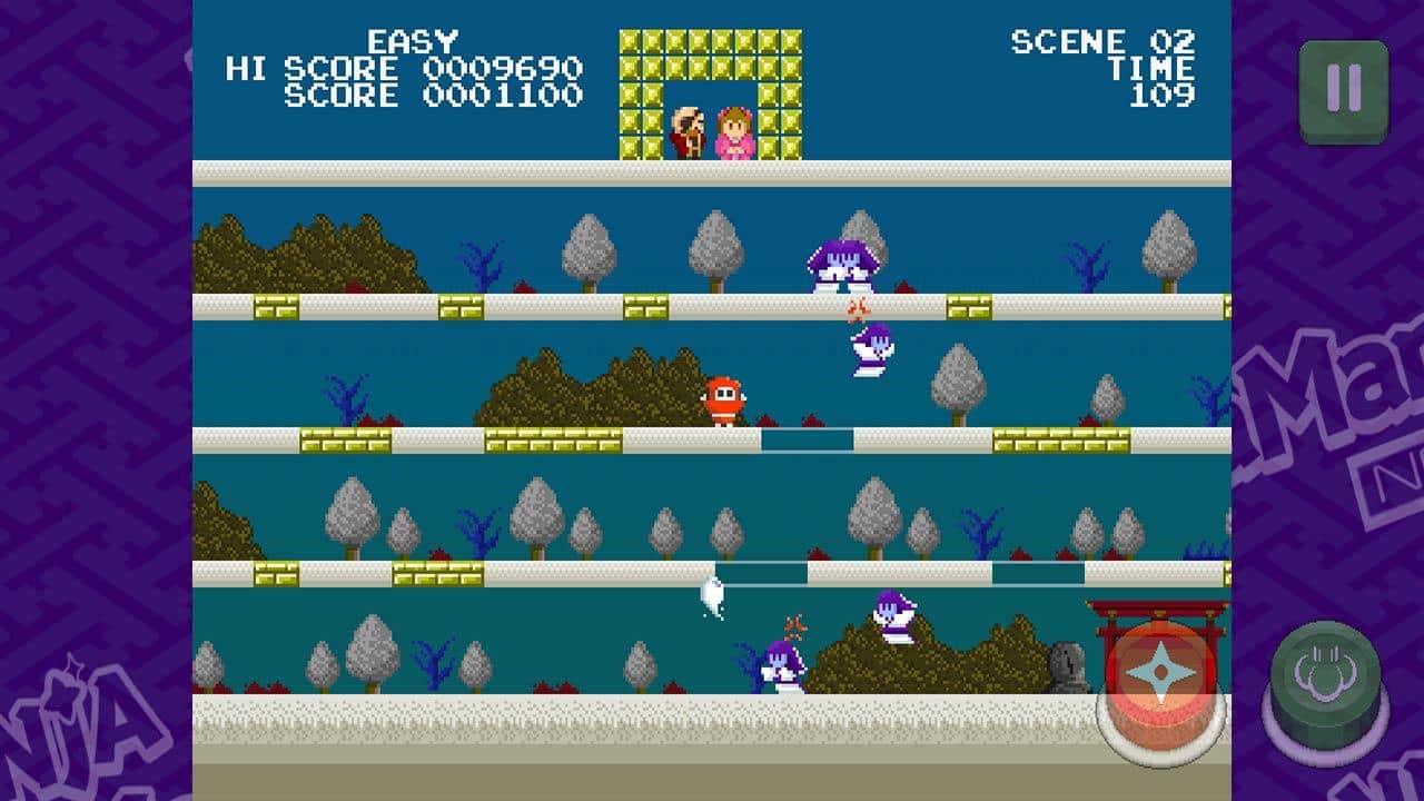 Ninja JaJaMaru neo classic - Спасите принцессу Сакуру от рук зловещего Намадзу Даю. Вы вместе с главным героем должны справиться с врагами и сложной дорогой, прежде чем доберетесь к главному боссу. Превратите испытания в увлекательное веселье - прыгайте, бегайте, стреляйте, а также выбирайте правильные моменты для передвижения между ярусами платформ. Выгодно используйте дополнительные предметы (жаба, фургон, красная бусина..) и полностью пройдите 50 этапов, наполненных ниндзями. Получайте опыт, бейте рекорды по времени и исследуйте каждую локацию.