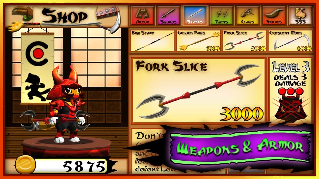 Ninja Kitty - игра на аndroid, в которой вы отправитесь в опасное приключение. Ваш необходимо будет вернуть похищенных котят наследников королевства. Приложите все свои навыки, прыгайте, бегайте и преодолевайте смертельные ловушки и препятствия. Используйте свое оружие для очистки пути и борьбы с ужасными боссами.
