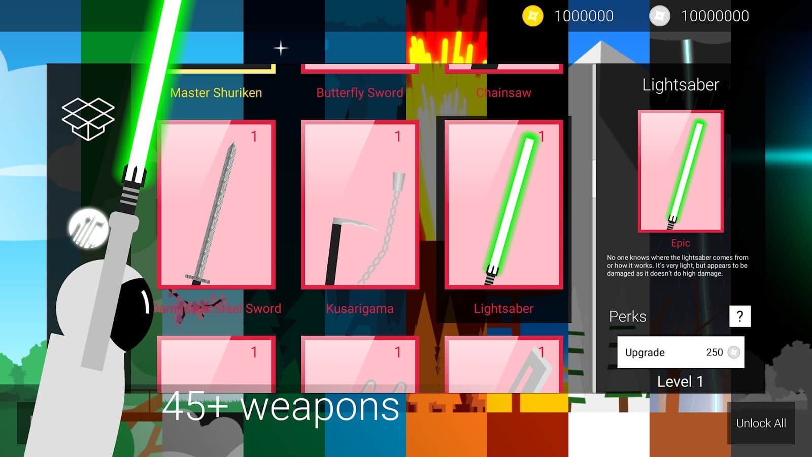Ninja Masters – захватывающая игра на андроид, где вы будете управлять ниндзя. В этой игре вы не найдете множество разнообразных и длинных комбинаций которые вам необходимо запоминать чтобы проделать комбо удары. Вашей задачей будет нажимать на две кнопки которые отвечаю за уклонение и атаку. Тщательно продумывайте свои действия и наносите сопернику сильные удары и побеждая в одиночном поединке. Выбирайте подходящее для вас оружие, от которого будет зависеть ваш выигрыш или проигрыш. Бросайте вызов своим друзьям и сражайтесь с ними на арене.