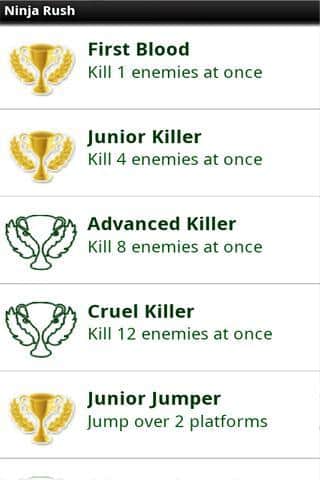 Ninja Rush - Андроид раннер, выполненный в платформерном стиле. Цель игры проста: вам предстоит бежать по залам, избегая препятствия и прыгая с платформы на платформу, при этом не забыть выпускать звездочки, чтобы убивать врагов. Так же у вашего героя есть супер удар. Он превращается в одну большую звезду. Летит и парит по уровню на протяжении небольшого времени.