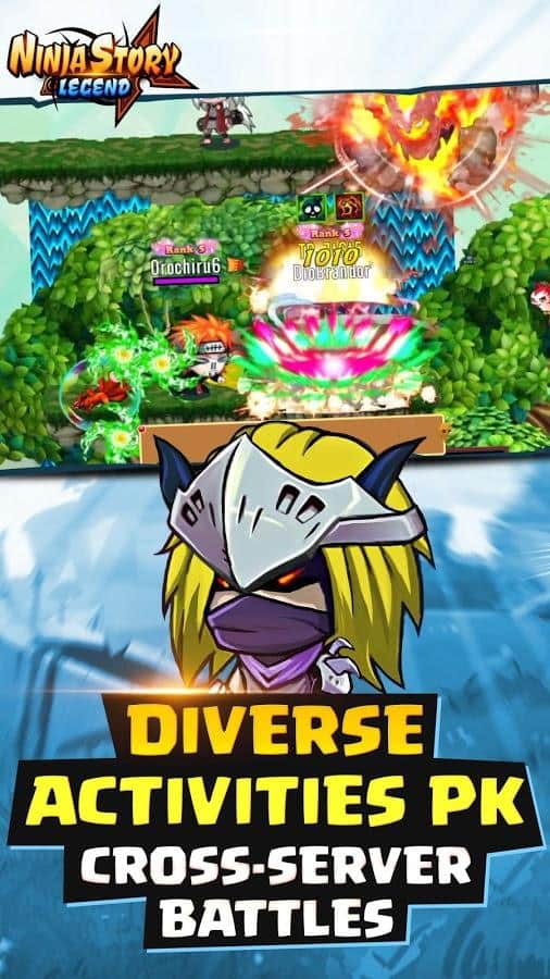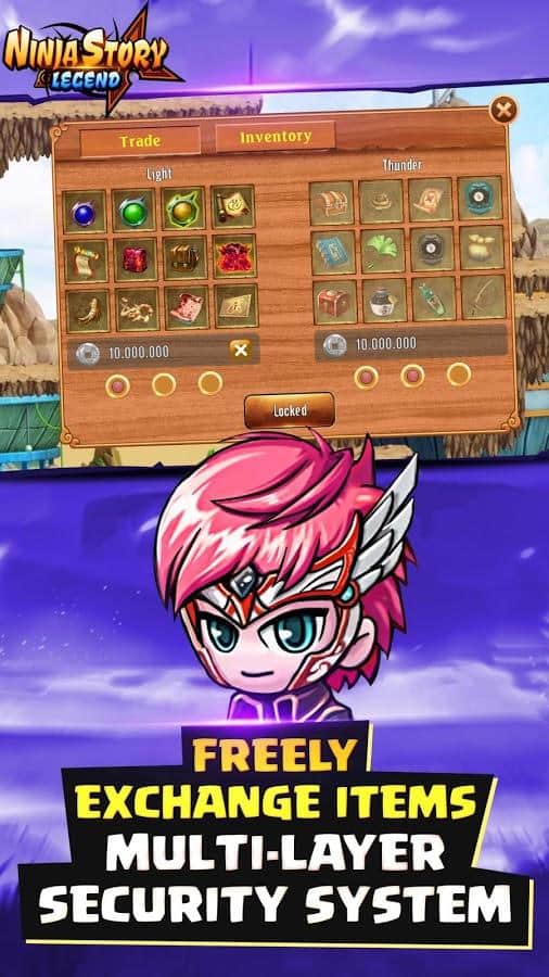 Ninja Story Legend – ролевая игра на андроид, где вы будете управлять любимыми персонажами. Возьмите под свой контроль одного из персонажей и исследуйте увлекательный и неповторимый мир ниндзя. Изучайте уникальный мир и бросайте вызов другим игрокам со всего мира сражаясь с ними в поединках один на один, в командных боях и клановых войнах. В этой игре вы сможете свободно заниматься торговлей с другими игроками предлагая или покупая различные предметы. Управляйте своим шиноби и постоянно обновляйте его применяя различную экипировку и оружие.