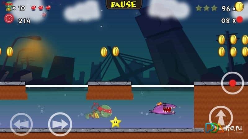 Ninja Turtle vs. Zombies - Классический андроид платформер с геймплеем схожим с привычной нам игрой – Марио. Вас ждет шестьдесят восемь увлекательных уровней, где ваш герой – ниндзя черепашка будет бороться с зомби. Сюжет игры разворачивается в 2093 году, когда из-за чрезмерной эксплуатации человека природного ресурса приходит новая угроза. Это высшая раса, которая гораздо развитей нас. За то, что мы сделали с нашей планетой, они решают истребить человечество и освободить нашу голубую планету. Единственный, кто может спастись от катастрофы – это мутант, который имеет одновременно два ДНК, человека и черепахи.