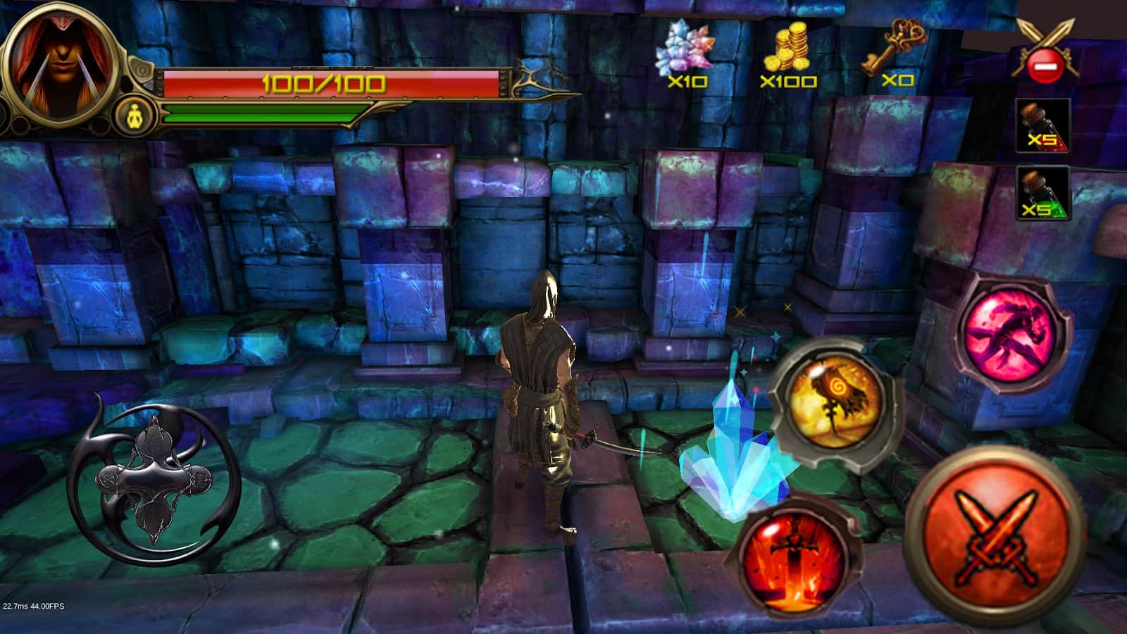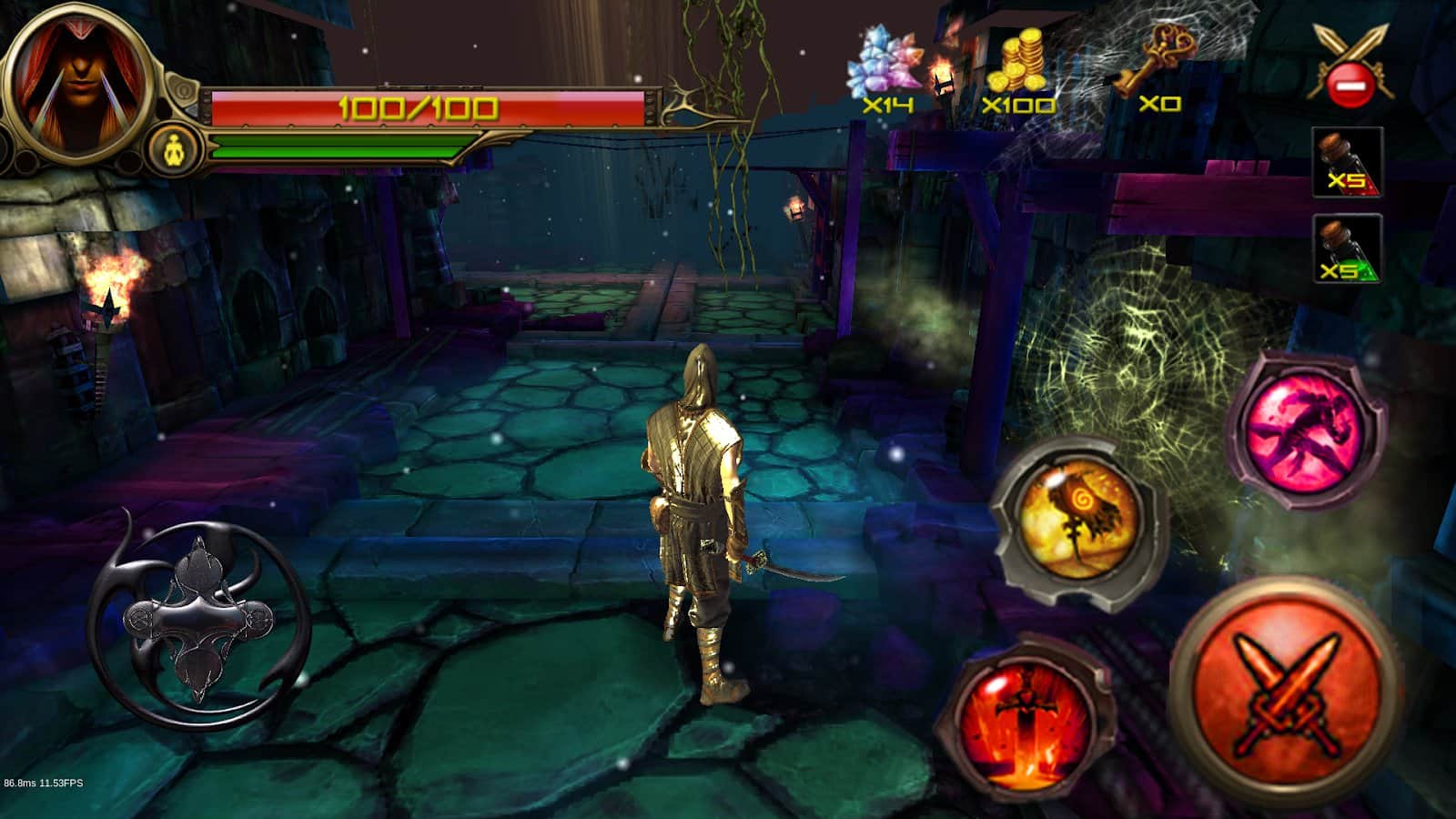 Ninja Warrior - Creed of Ninja Assassins – экшен на андроид, где вы будете управлять отважным ниндзя и исследовать темные подземелья. Возьмите под свой контроль главного героя и проведите его через многочисленные и разнообразные локации наполненные врагами и смертельно опасными ловушками. Обходите все преграды у себя на пути и собирайте золото и монетки. Вступайте в бой с врагами и не дайте им одолеть вас, применяя многочисленные удары и приемы. Станьте лучшим игроком в этой игре и добейтесь невероятных результатов.