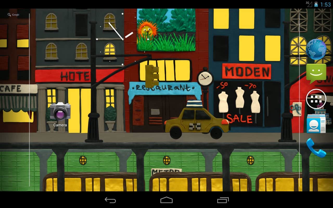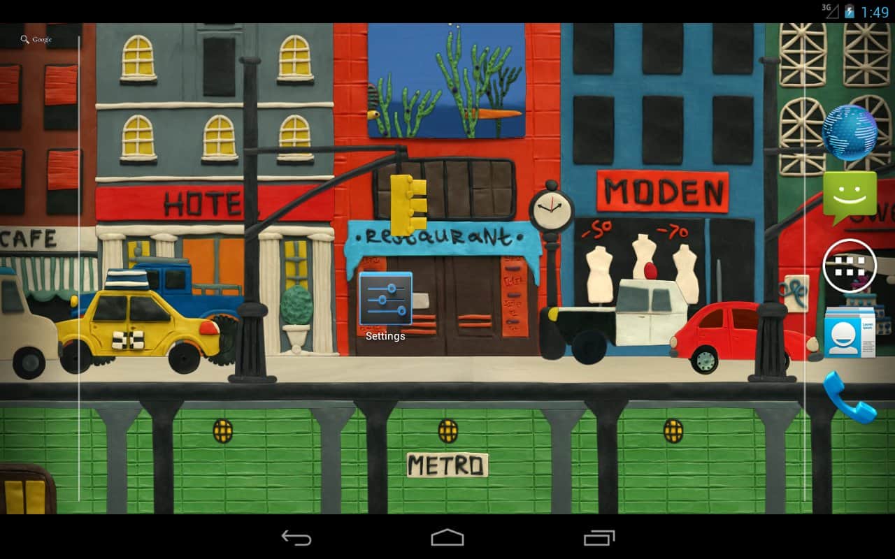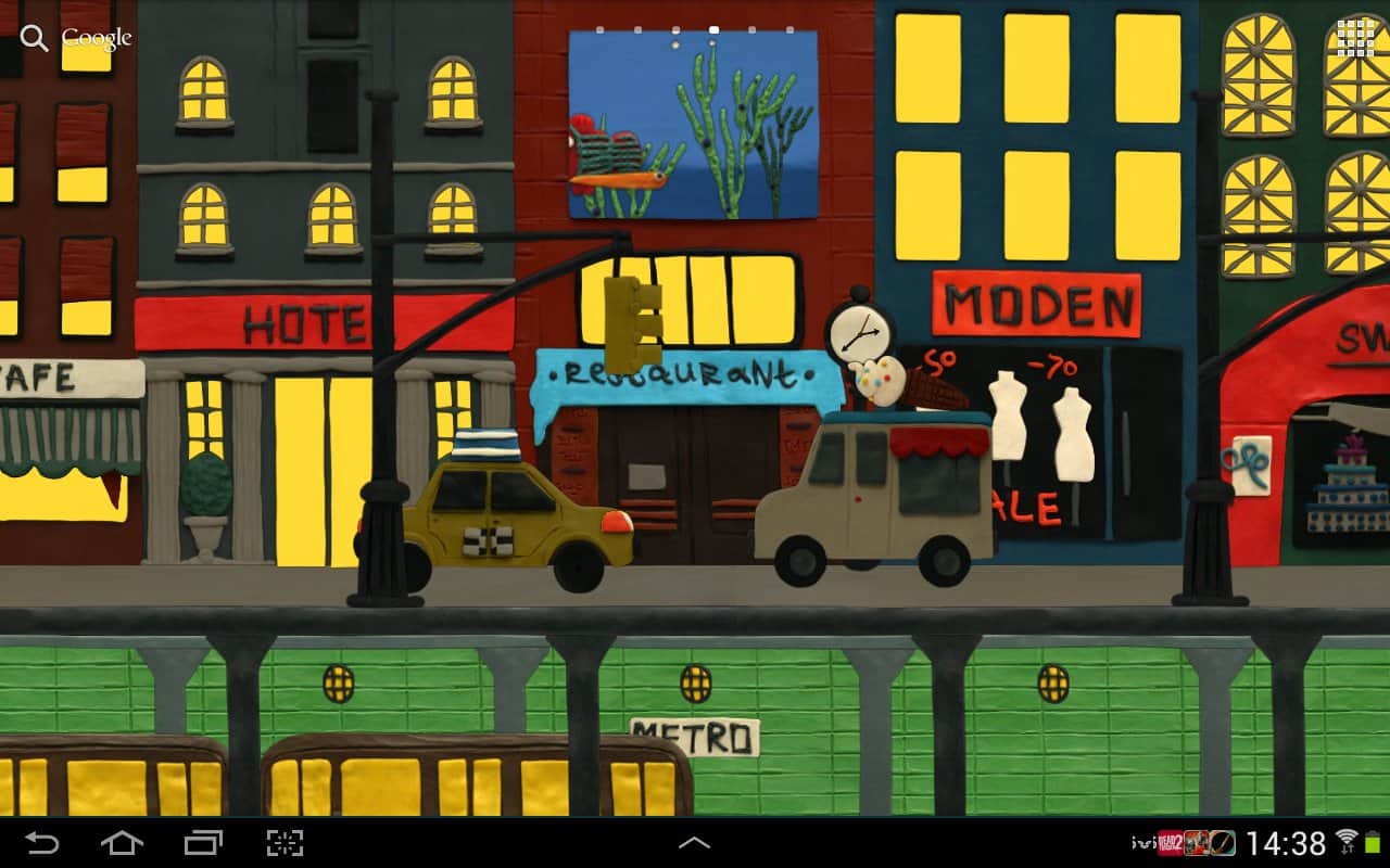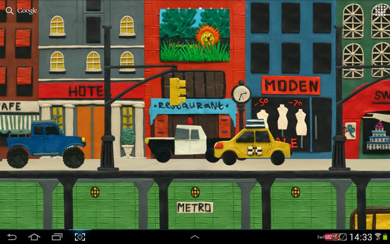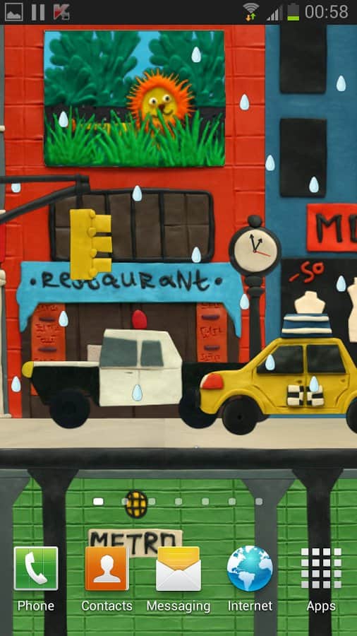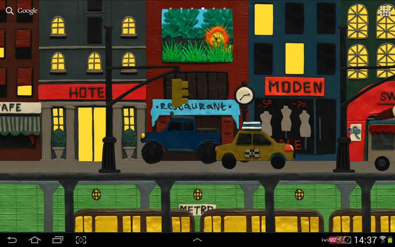 Нью-Пластилин Сити Живые обои – замечательные яркие живые обои для андроид устройств от разработчиков Kolesov & Mikhaylov. Пластилиновый город, наполненный машинами, зданиями, метро, есть смена времени суток и ручная настройка погодных условий и многое другое– все это появится у вас на экране, стоит только скачать и установить данные обои.