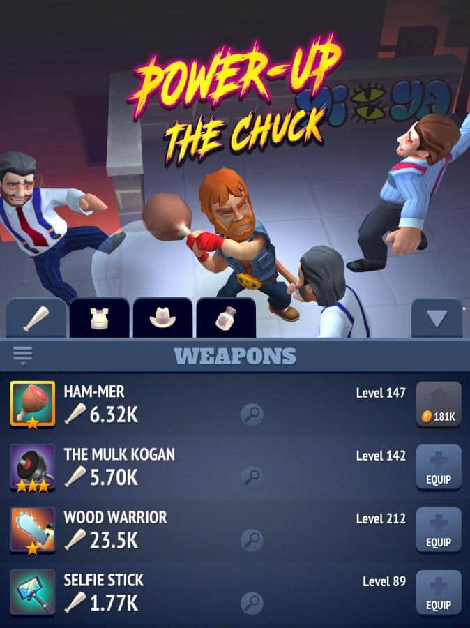 Nonstop Chuck Norris – аркадный файтинг для IOS, где вы будете помогать Чаку Норрису, очищать город от преступности. Наш герой будет перемещаться по улицам родного города и вступать в бой с преступниками и бандитами. Нападайте на своих противников и с помощью мощных ударов руками и ногами обезвреживайте соперника, а также применяйте биту. Выполняйте все поставленные в этой игре миссии и получайте ценные призы и вознаграждения. Посещайте магазин и на заработанные монетки приобретайте ковбойские шляпы, бензопилы и другие предметы нужные вам в бою. Играйте в эту игру и соревнуйтесь со своими друзьями за лучшие результаты.