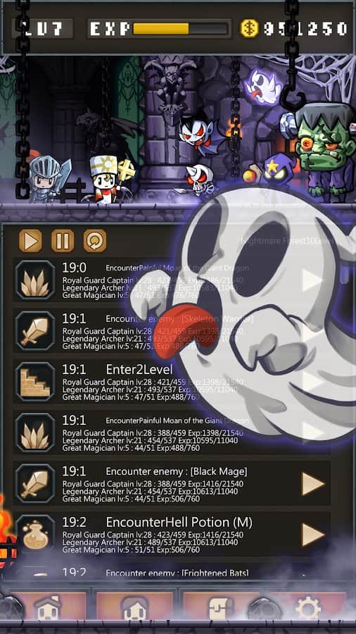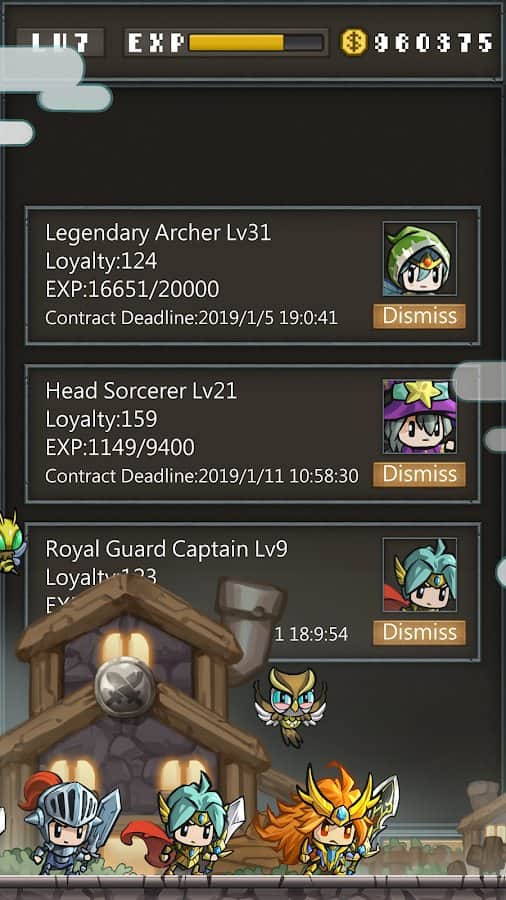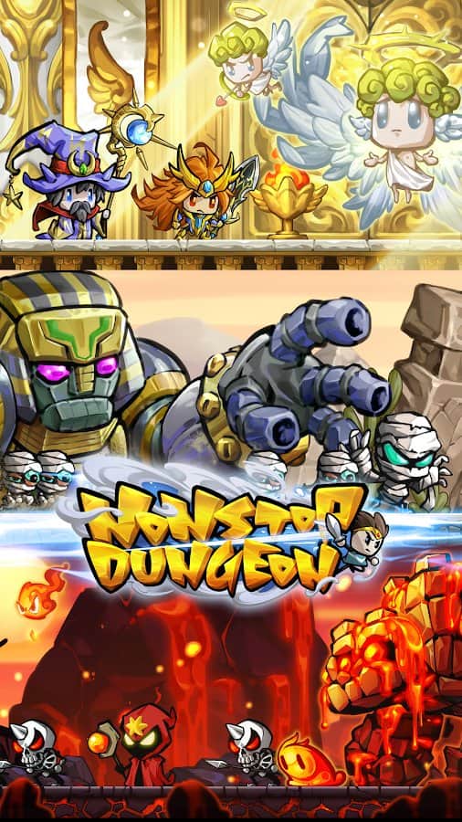 NonstopDungeon – милая и увлекательная игра на андроид, где вы окунетесь в средневековый мир. В этой игре вы будете играть роль работодателя группы наемников которых вы нанимаете ради того чтобы исследовать разнообразные города и деревни и искать сокровища. Наемники в этой игре подразделяются на три вида, которые сражаются в ближнем бою, удаленном или применяют заклинания. Вашей задачей будет разрабатывать выигрышную тактику боя, чтобы одолеть всех врагов и повысить уровень героев. По мере прохождения игры вам будут попадаться более сильные враги, которых не так просто будет победить.