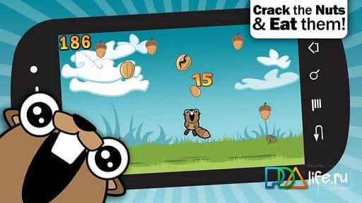 Управляйте белкой наклоняя телефон и разбивайте орешки.