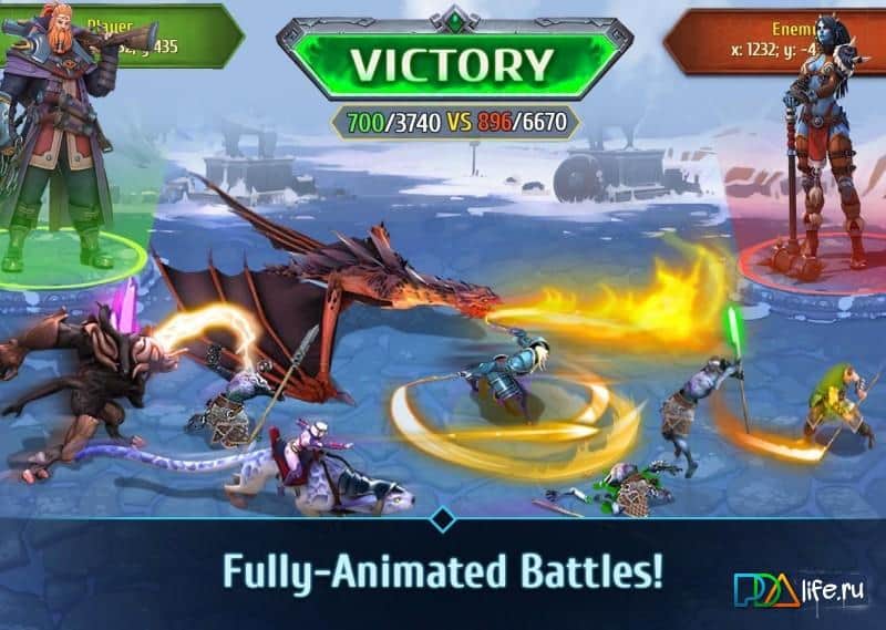 Nords: Heroes of the North – стратегия на андроид, где вы будет защищать свое государство от полчища врагов. На северное королевство нападают враги вашей задачей будет собрать огромное войско и дать отпор врагам. Поставьте во главе своего войска самых опытных и отважных героев, которые не подведут вас. Путешествуйте по всему королевству и освобождайте захваченные города от врагов. Также не забывайте о главной столице, развивайте и укрепляйте ее, чтобы у захватчиков не было шансов на победу. Постоянно увеличивайте численность своей армии, а также объединяйте свои силы с друзьями в масштабных сражениях и битвах.