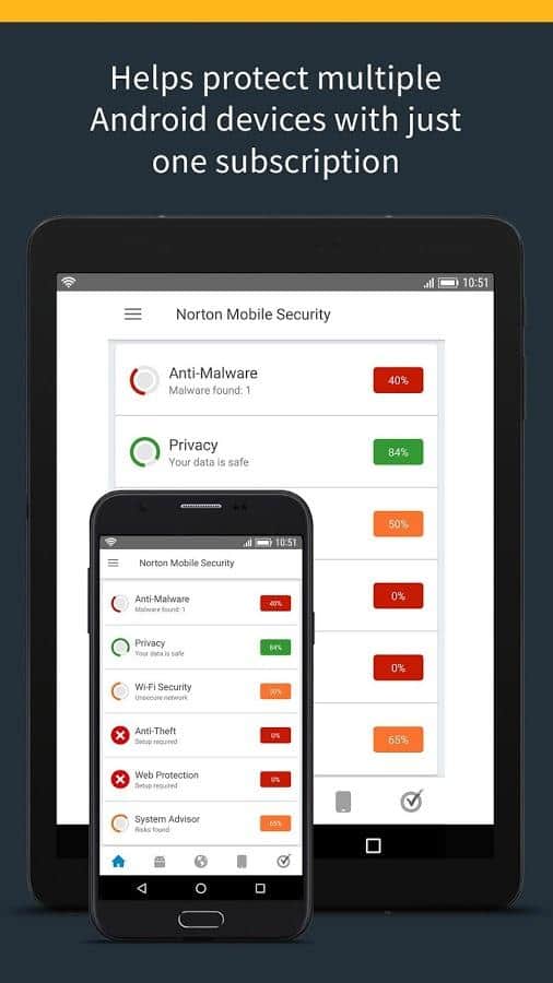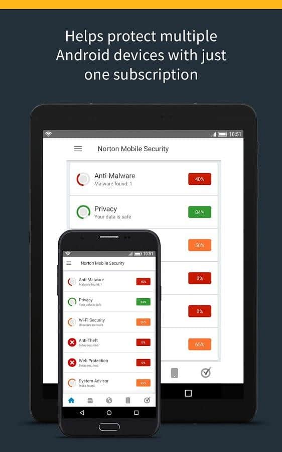 Norton Security and Antivirus - Боитесь за безопасность своих данных? Сейчас в интернете очень больше количество различных вирусов, одни созданы с целью уничтожить ваши файлы, другие же их похищают, но что же делать что бы избежать всего этого? Ответ простой, установить антивирус! Данное приложение отлично справится не только с вирусами, и вредоносными файлами, но так же предупредит вас о наличии навязчивой рекламы в сторонних приложениях. Многие из нас сталкивались с той проблемой, когда установив одно приложение, получали совершенно другое да ещё и с кучей рекламы. Так вот всего один простой антивирус защитит вас от множества проблем с вашим устройством.