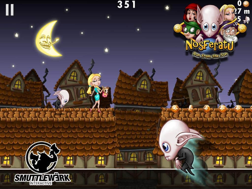 Nosferatu – Run from the Sun - в этой увлекательной 2D аркаде вы играете за вампира, которому все по плечу - ведь он самый шустрый, самый ловкий и самый быстрый. Как долго сможете вы избегать солнца - зависит только от вас - бегайте, прыгайте, собирайте монетки, простых смертных, бонусы и пр - все пригодится. Только будьте осторожны, вы ведь в курсе чего боятся вампиры....