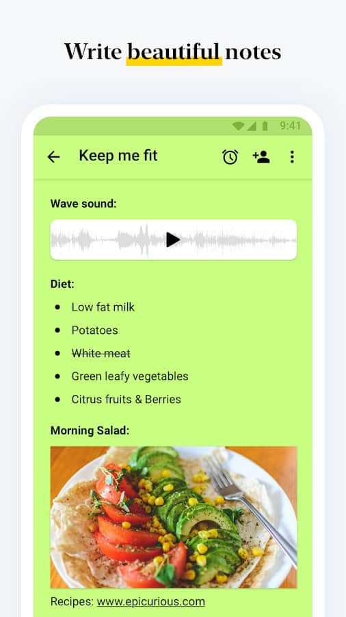Начните с текстовых заметок, добавьте изображения, контрольные списки и даже аудиозаписи все в рамках одной записи.