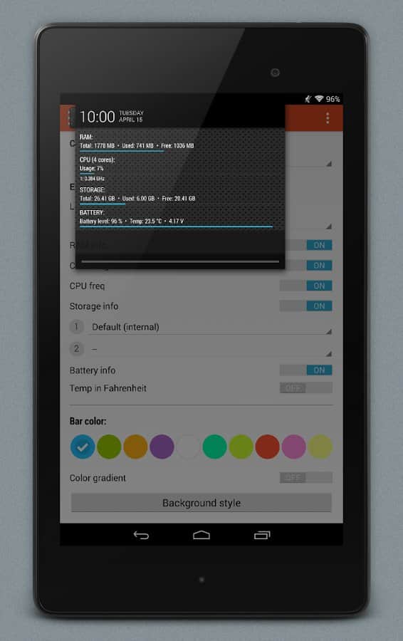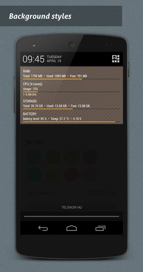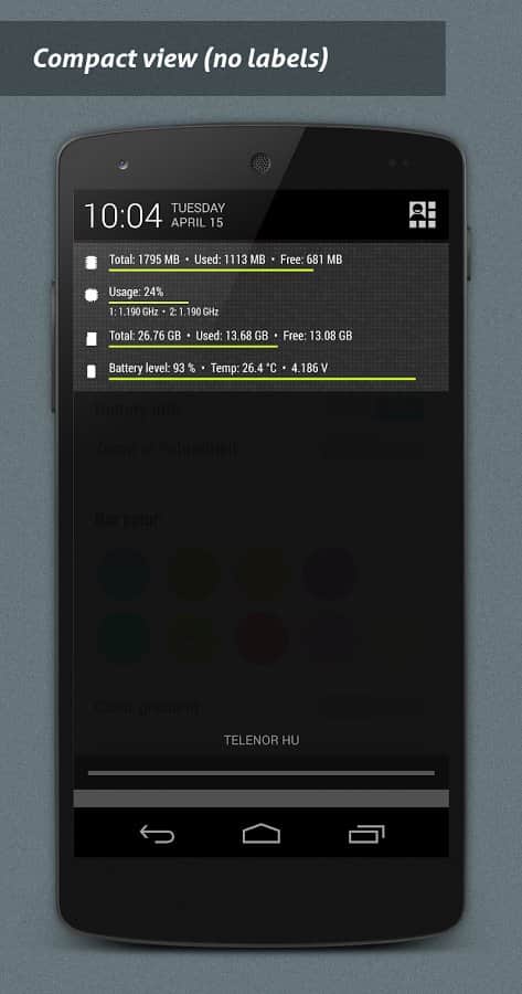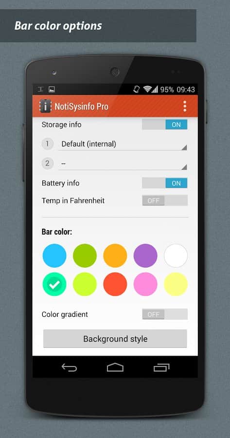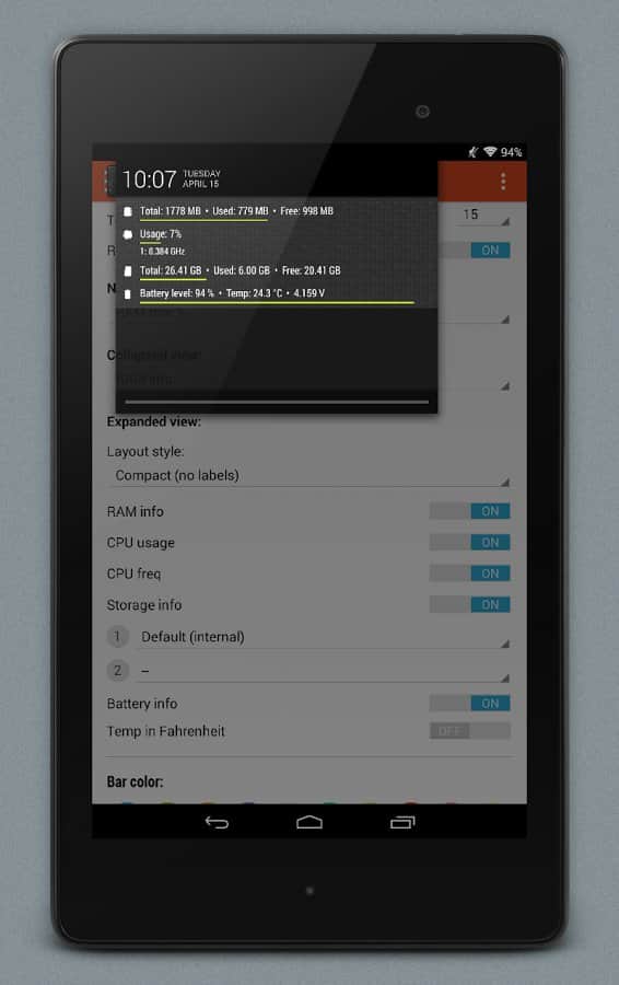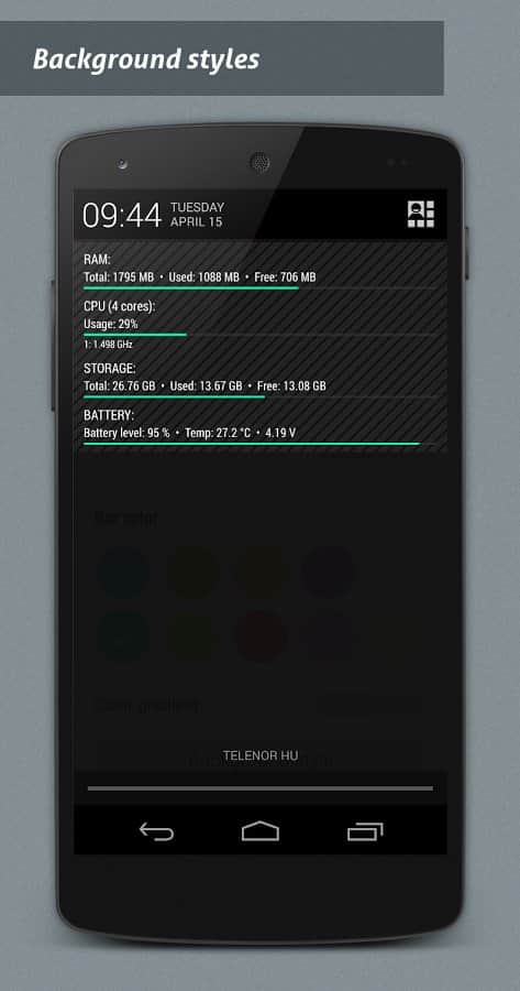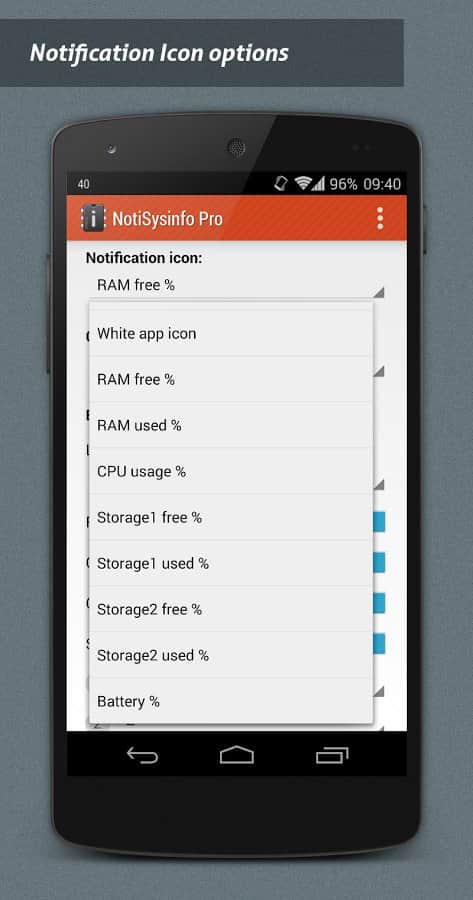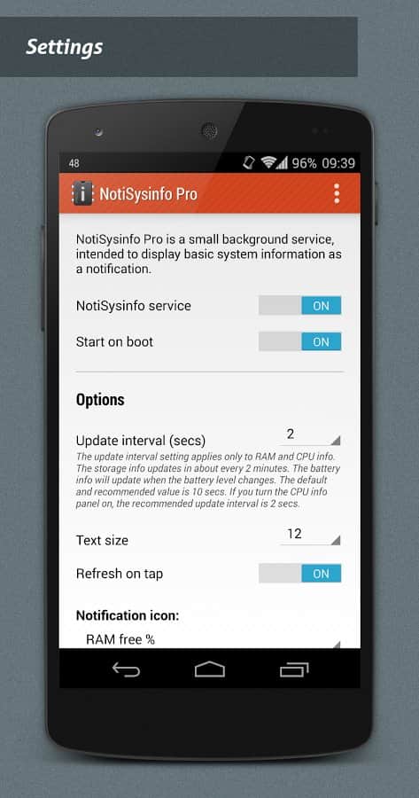 NotiSysinfo Pro - Система оповещений это стандартное приложение в смартфоне каждого, однако что делать если эта система функционирует не на все 100%. Вот тут то нам и пригодится это простое, но весьма хорошее приложение. Его суть состоит в том, что бы оповещать вас о тех подробностях, которых нету в стандартных системах. К примеру хотите ли вы знать температуру вашего смартфона? Если она перейдет допустимый предел, или если ваша память станет слишком забита, эта система мгновенно оповестит вас, таким образом вы сохраните работоспособность и жизнь смартфона. Очень простой и действенный способ сохранить работу вашего устройства.