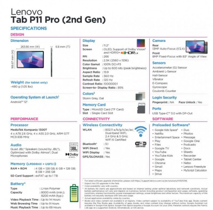 Lenovo Tab P11 Pro получил динамики JBL с поддержкой Dolby Atmos.
