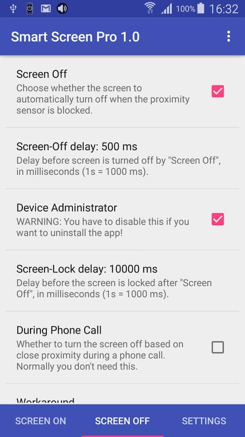 Эта программа использует датчик приближения и гироскопы для определения момента включения и отключения экрана. По этому она может серьёзно повлиять на автономную работу смартфона.