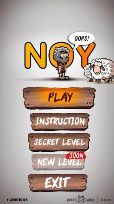 NOY - увлекательная аркада в которой вам предстоит помочь Ною продержаться как можно дольше живым во время всемирного потопа, а делать это предстоит довольно необычным путем. С неба сыпяся всевозможные предметы, ящики, доски, бомбы и прочее, ваша задача используя все что упало по назначению выстроить помост или сооружение или что-то что поможет вам укрыться от постоянно прибывающей воды. Строить необходимо побыстрее ведь потоп ждать не будет. Не смотря на незамысловатый, на первый взгляд, геймплей игра быстро затягивает и не последнюю роль в этом играет отличная рисованная графика и харизматичные персонажи.