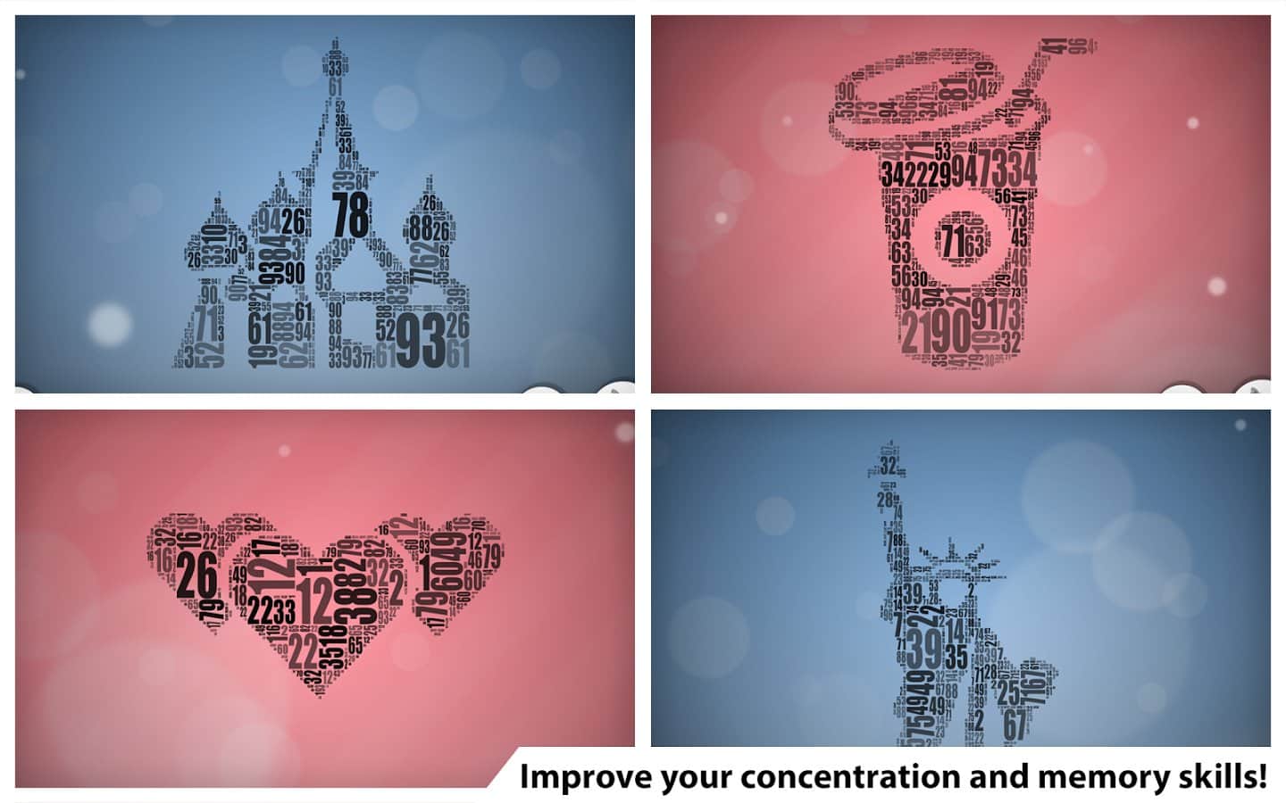 Numerity - головоломка от создателей шедевральной Blueprint 3D, на этот раз разработчики решили отойти от трехмерных моделей и обратить свое внимание на цифры. Игровая механика довольно проста, но при этом требует внимания и сосредоточенности. На игровом поле заполненном числами и цифрами различного размера и стиля необходимо найти заданное значение. По мере выполнения задания из хаотично раскиданных знаков будет вырисовываться картинка, а весь геймплей протекает под оригинальное звуковое сопровождение что только дополняет игровую атмосферу. В Numerity для Андроид более 60 уровней выполненных в 6 различных тематических разделах. Еще одной особенностью этой игры является то что Numerity полностью бесплатная и не содержит никаких внутриигровых покупок.