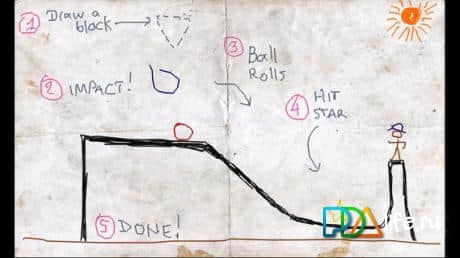 Numpty Physics - увлекательная и интересная игра для symbian. У вас есть лист мятой бумаги и карандаш, с помощью него вы будете рисовать.На листке у вас уже нарисована звездочка и шарик, находятся они всегда вдалеке друг от друга и разделены препятствиями, ваша задача заключается в следующем, используя законы физики, соединить их вместе. Соединить их можно, рисуя карандашом блоки, веревки, рычаги, лифты, лестницы вообщем все что захотите.