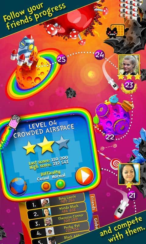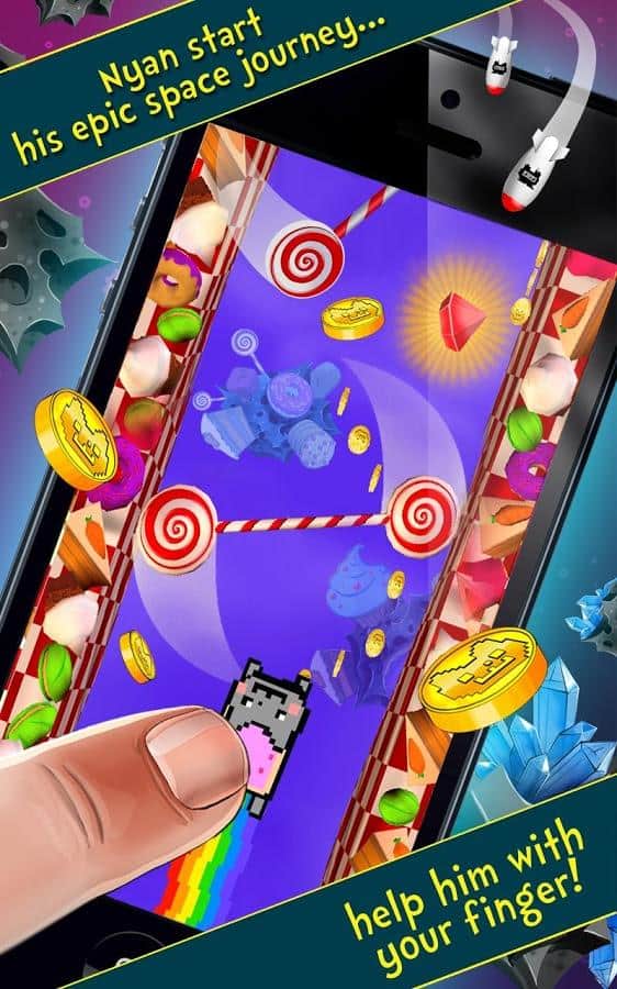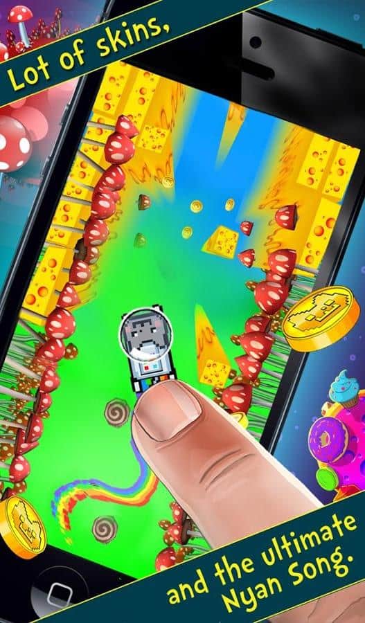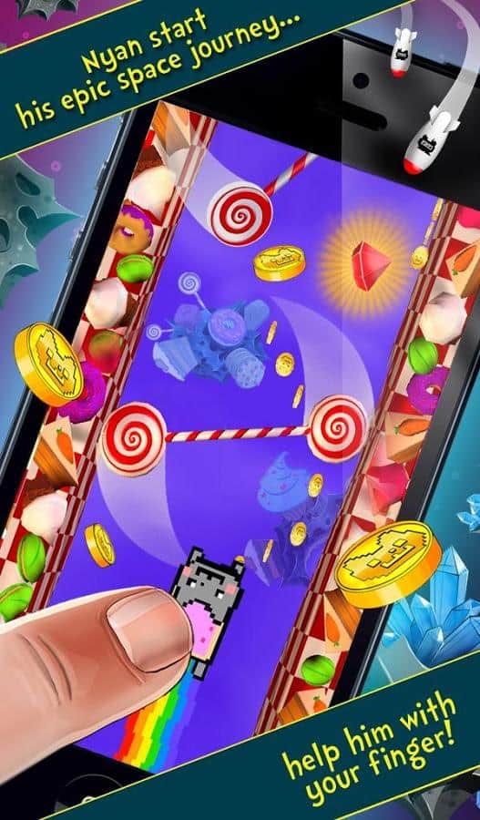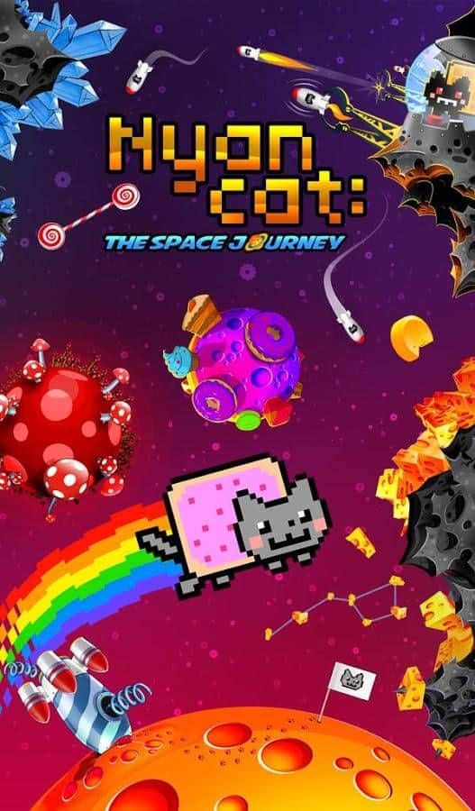 Nyan Cat: The Space Journey - отличный раннер про известно котика. Вы попали в космос полный конфет, сыра, тортов и другой вкуснятины. Игра обладает элементарным управлением в одно касание, так что учиться играть не придётся.