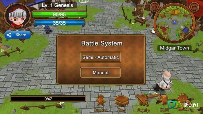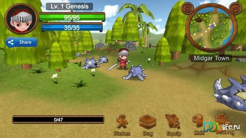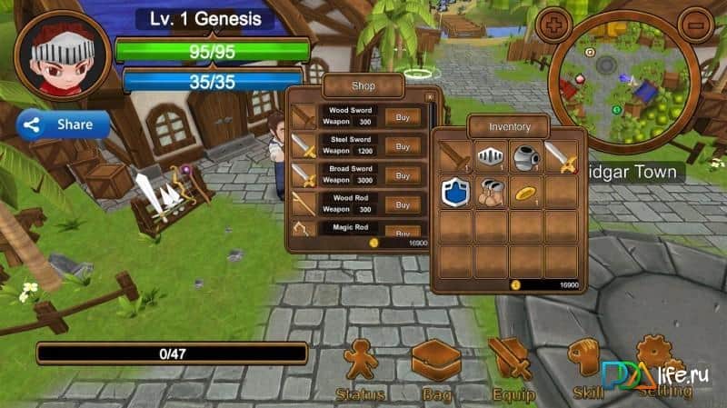 Oath of Genesis – ролевая игра на андроид, где вам предстоит помочь жителям небольшой деревни, победить мощных волков. Война людей и волков давно началась в деревне Мидгар и только вы в состоянии помочь местным жителям в этой нелегкой битве. Выбирайте себе героя из большого количества представленных персонажей и проведите его по всем локациям игры. Каждый герой в этой игре обладает своими уникальными навыками и оружием, улучшайте их по ходу игры и наделяйте новыми способностями. Путешествуйте по сказочному миру, используя для этого карту и различные камеры, и выполняйте многочисленные миссии. Посетите магазин и приобретите там для своего героя новую одежду и зелья, чтобы одурманить врагов.