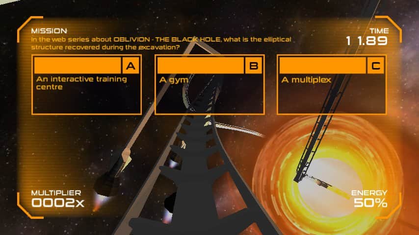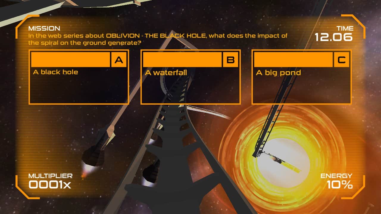 Oblivion – Mission Oblivion – невероятное путешествие, где вам предстоит мчаться на огромной скорости по скоростному туннелю. В вашем городе в парке аттракционов неизвестно от куда появилась черная дыра, которая переносила людей в гиперпространство. Не пропустите такое невероятное приключение и прокатитесь на этом аттракционе. Вначале вы будете кататься на американских горках, а затем попадете прямо в портал и будете мчаться по извилистому туннелю через космическое пространство. В этом туннеле вы проверите на деле свою реакцию, избегая на пути все препятствия и собирая бонусы. В игре большое разнообразие интересных миссий, которые вам предстоит выполнить и неповторимый игровой процесс.